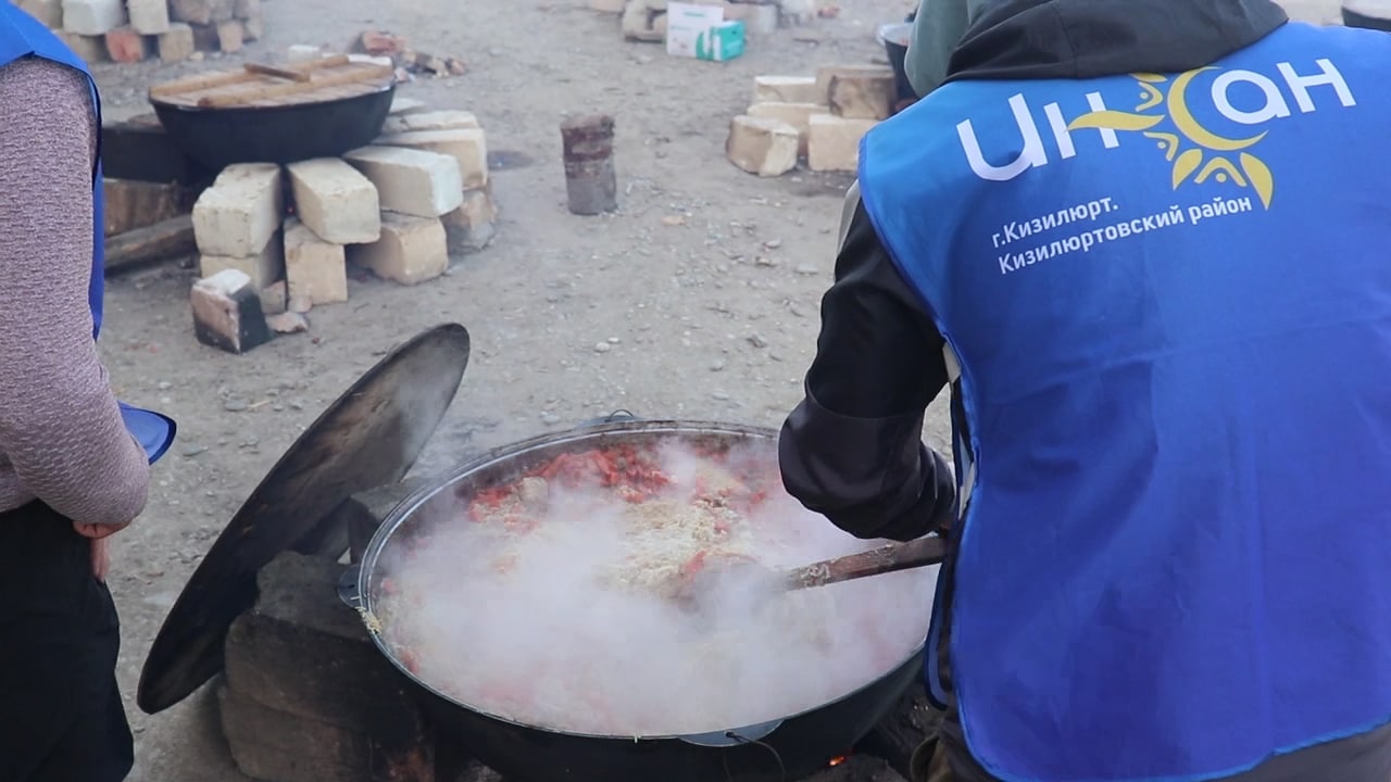 Завершился вечер ярким праздничным салютом. После вкусного узбекского плова, который был приготовлен в 40 казанах , желающие смогли отведать также праздничный торт с кружкой горячего чая на костре. А каждой женщине волонтеры вручили по одной розе.