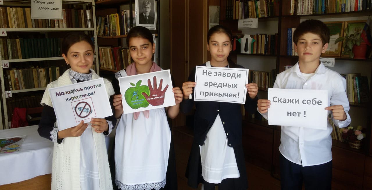 Были приглашены учащиеся 10-7-1 классов. Заведующая сельской библиотекой Сапият Гасанова рассказала ребятам о вреде, причиняемом здоровью тех, кто употребляет наркотики.