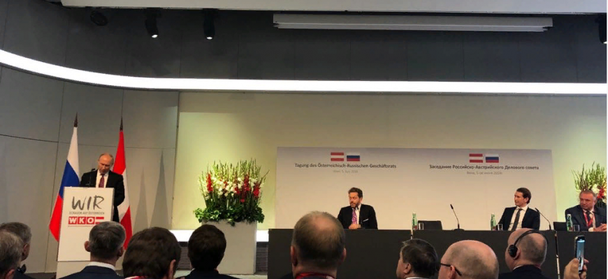 Отметим, что Австрийско-Российский деловой совет проходит с участием Президента РФ Владимира Путина и канцлера Австрии Себастьяна Курц. Также на мероприятии присутствовали федеральные министры, главы субъектов России, бизнес-сообщество.