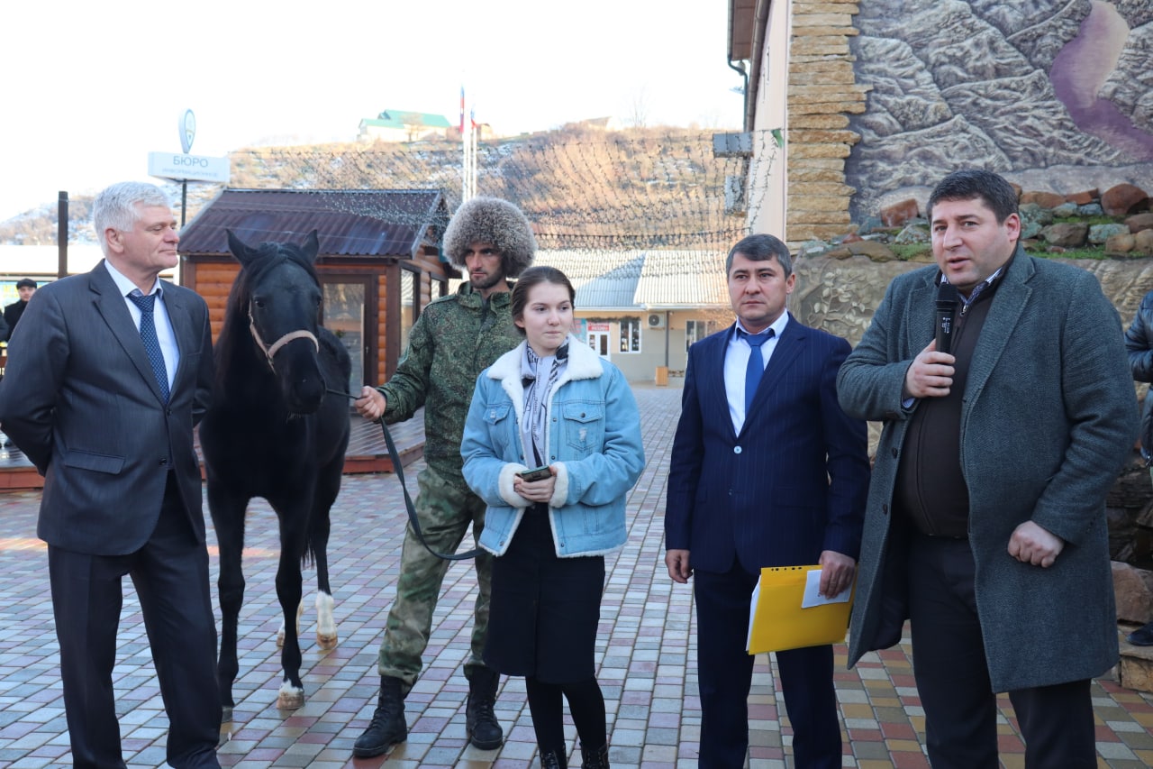 В торжественной обстановке на территории экотуркомплекса «Главрыба» глава Кизилюртовского района Рустам Татарханов от имени депутата Госдумы вручил школьнице полуторагодовалую лошадь.