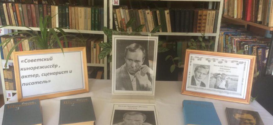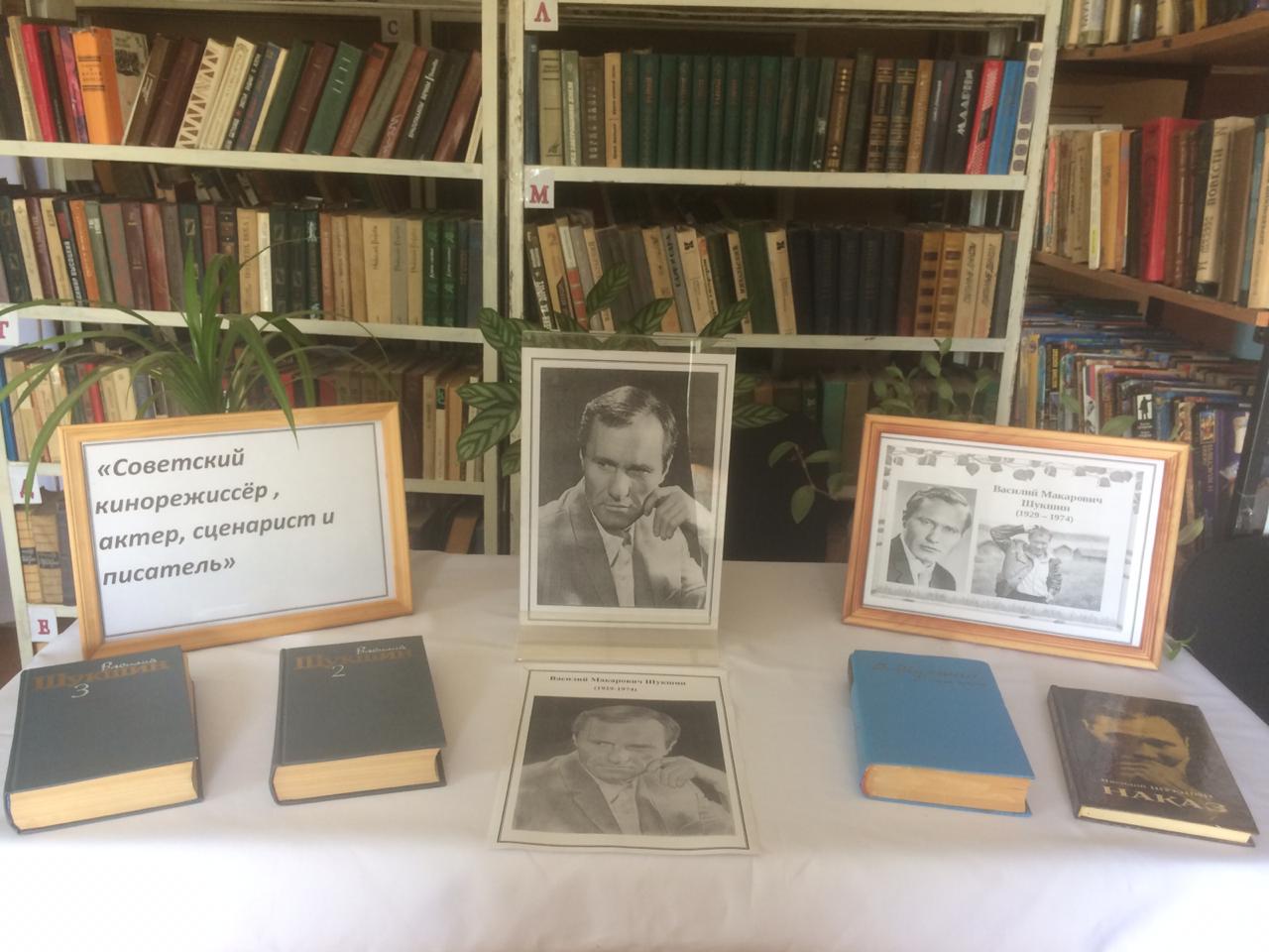 24 июля в библиотеке селения Новый Чиркей в рамках празднования юбилея Василия Шукшина оформлена книжная выставка «Советский кинорежиссер, актер, сценарист и писатель».