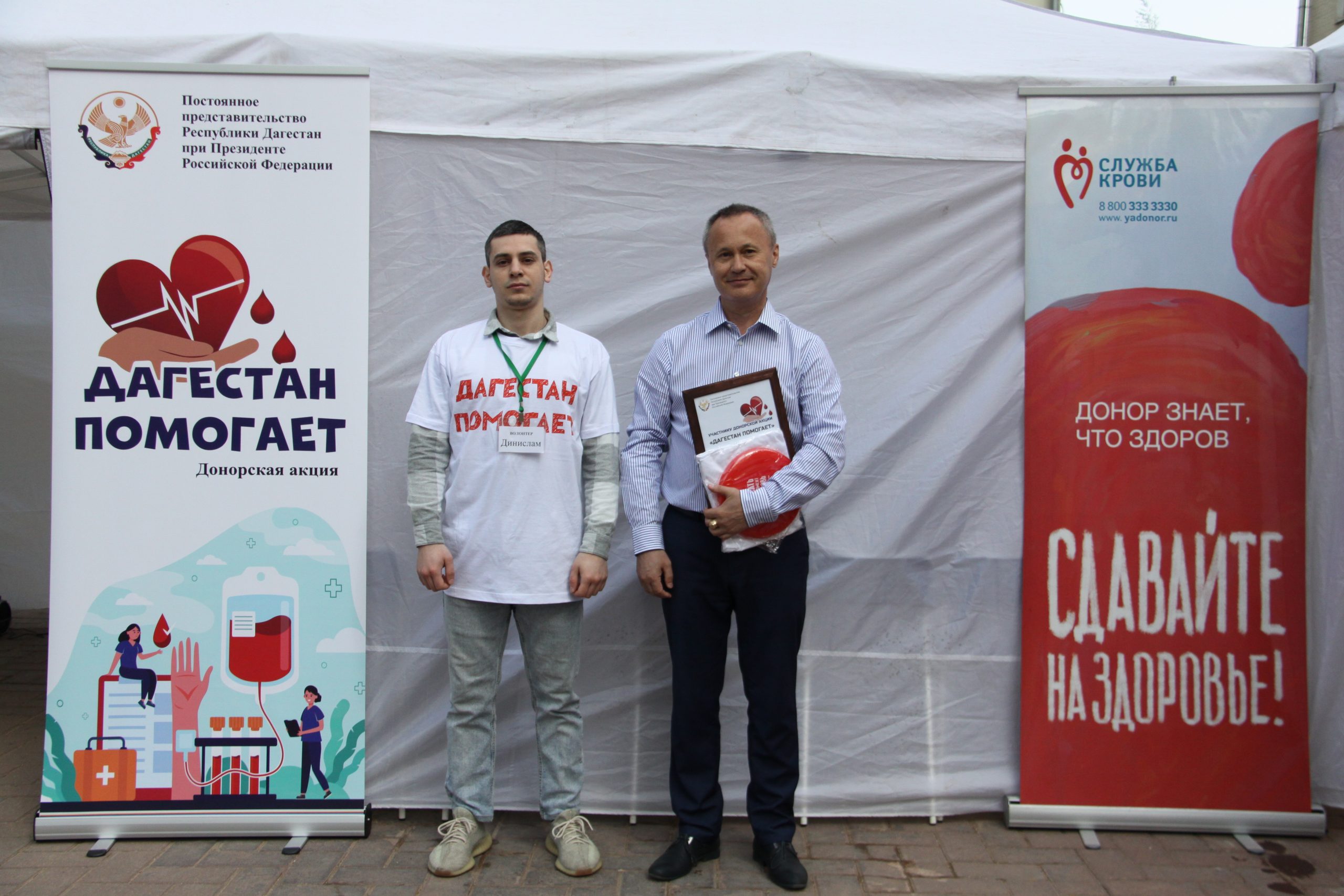 11 мая в донорской акции приняли участие Постоянный представитель Республики Дагестан при Президенте Российской Федерации Владислав Толстюк, депутат Государственной Думы РФ Султан Хамзаев, депутат Народного Собрания РД Кирилл Глазов, сотрудники Постоянного представительства Республики Дагестан при Президенте Российской Федерации, представители общественных и культурных объединений, студенты-дагестанцы, обучающиеся в вузах Москвы.