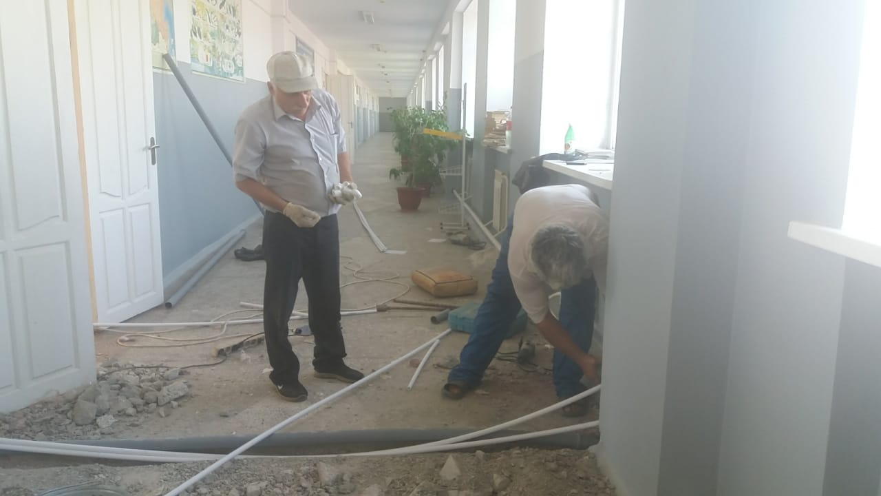 В Кульзебской школе, по словам директора учреждения Халимат Рашидовой, полностью обновляются два кабинета на втором этаже. «На данный момент в кабинеты проводят воду, и остается только покрасить стены, завезти мебель и технику», — заверила она.
