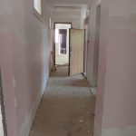 Что касается пола, здесь идет разборка деревянных плинтусов и снятие старого линолеума, далее будет произведена цементная стяжка, а затем укладка плитки из керамогрантита. Будут также заменены окна и двери.