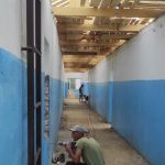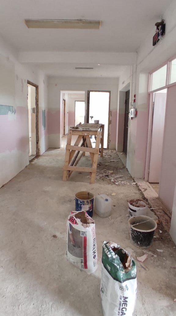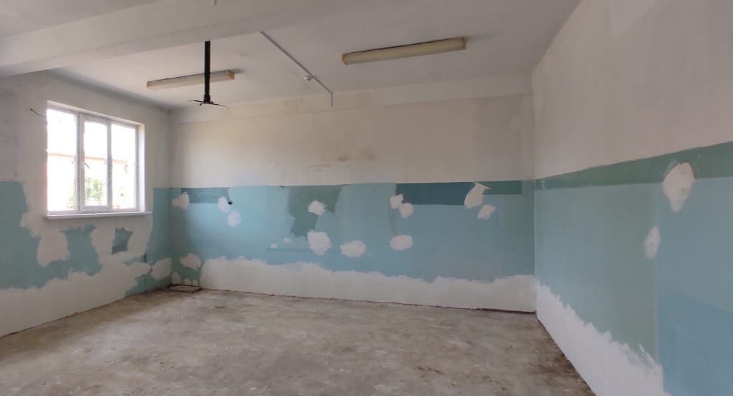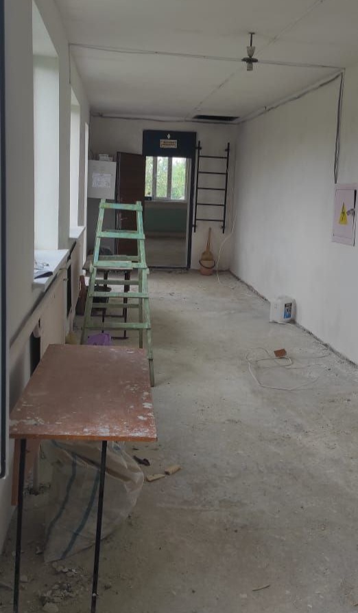 В спортзале школы также идёт капитальный ремонт, завершена заливка полов, отштукатурены стены и потолок, а также в раздевалках и душевых уложена плитка, проведена новая электропроводка.