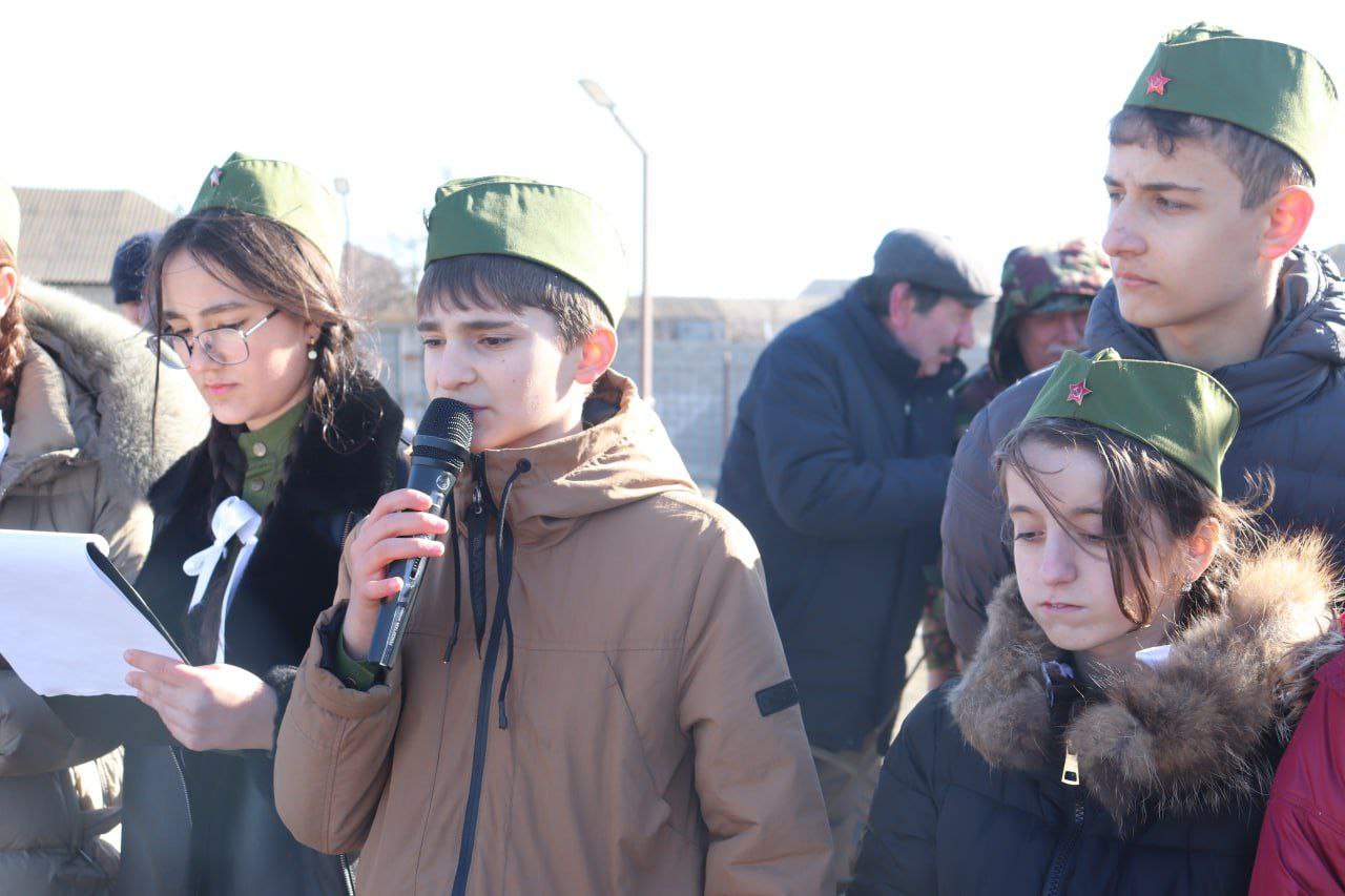 Ученики 8А класса Султанянгиюртовской СОШ№1 один за другим выходили на сцену и зачитывали стихи на военную тематику. Несмотря на ветреную погоду на протяжении всего праздника царила теплая, душевная атмосфера, переполненная чувством гордости.