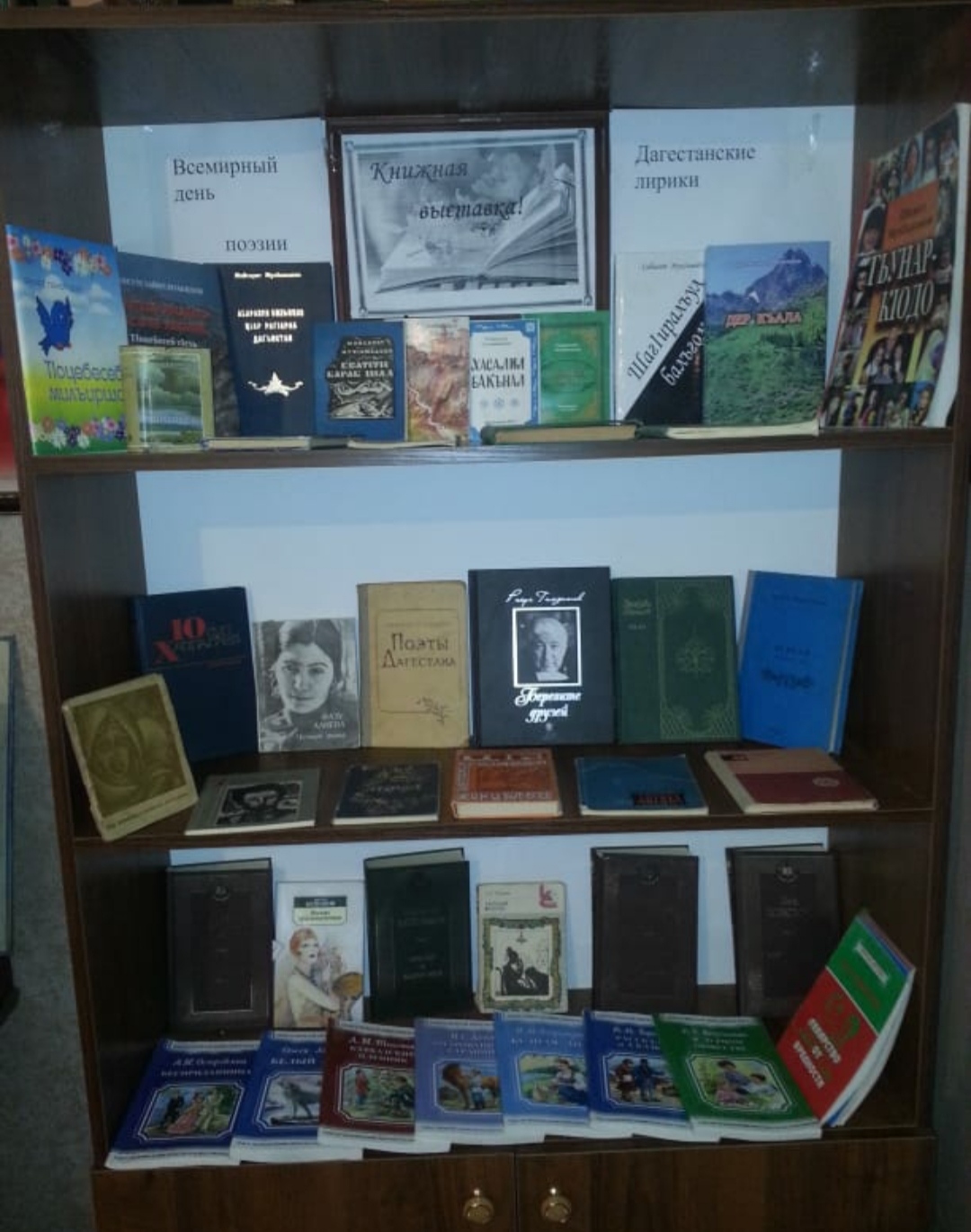Библиотека селения Стальское оформила книжную выставку ко Дню поэзии «Дагестанские лирики». Предоставлены вниманию пользователей книги для всех возрастов, на русском и на языках народов Дагестана.