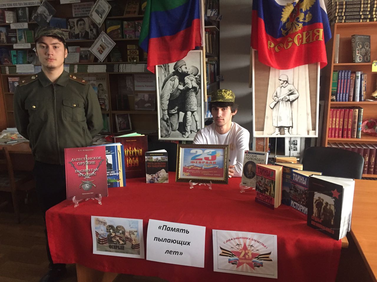 22 февраля ко Дню защитника Отечества в централизованной библиотеке Кизилюртовского района прошел литературный час мужества. В центре внимания читателей была книжная выставка «Память пылающих лет».