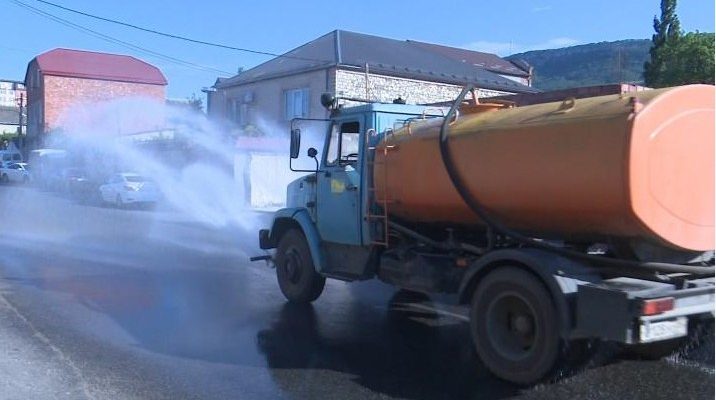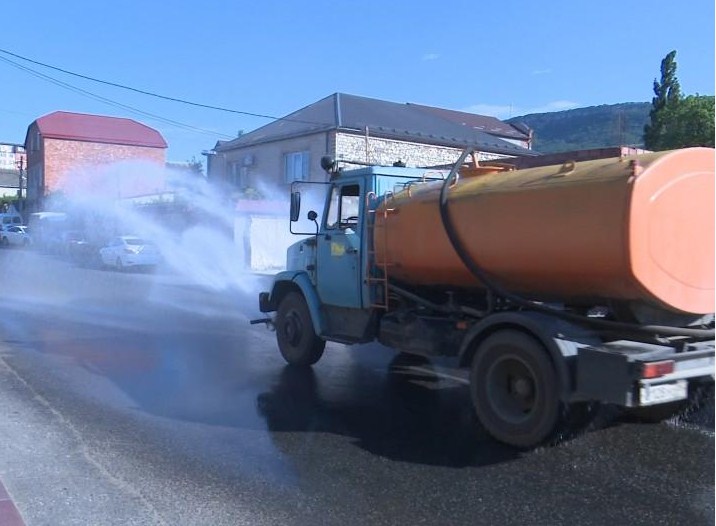 С повышением температуры воздуха коммунальные службы Махачкалы перешли на усиленный режим работы. Для того чтобы зной легче переносился автомобилистами и пешеходами, на улично-дорожной сети дагестанской столицы стала чаще работать крупногабаритная спецтехника МБУ «Махачкала-1», так как дорожное полотно требует дополнительного увлажнения во избежание деформации под длительным воздействием солнечных лучей и при большой транспортной нагрузке.
