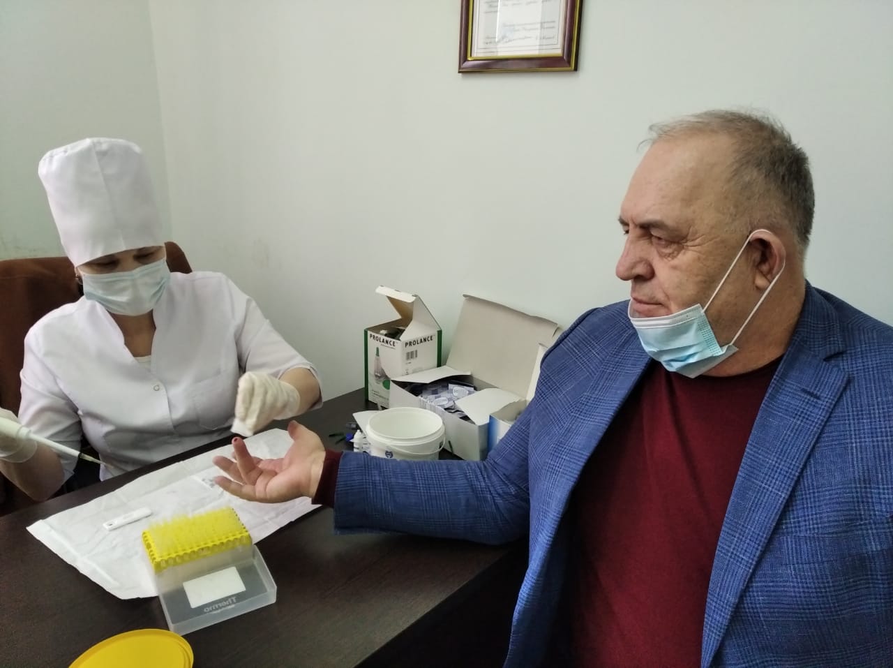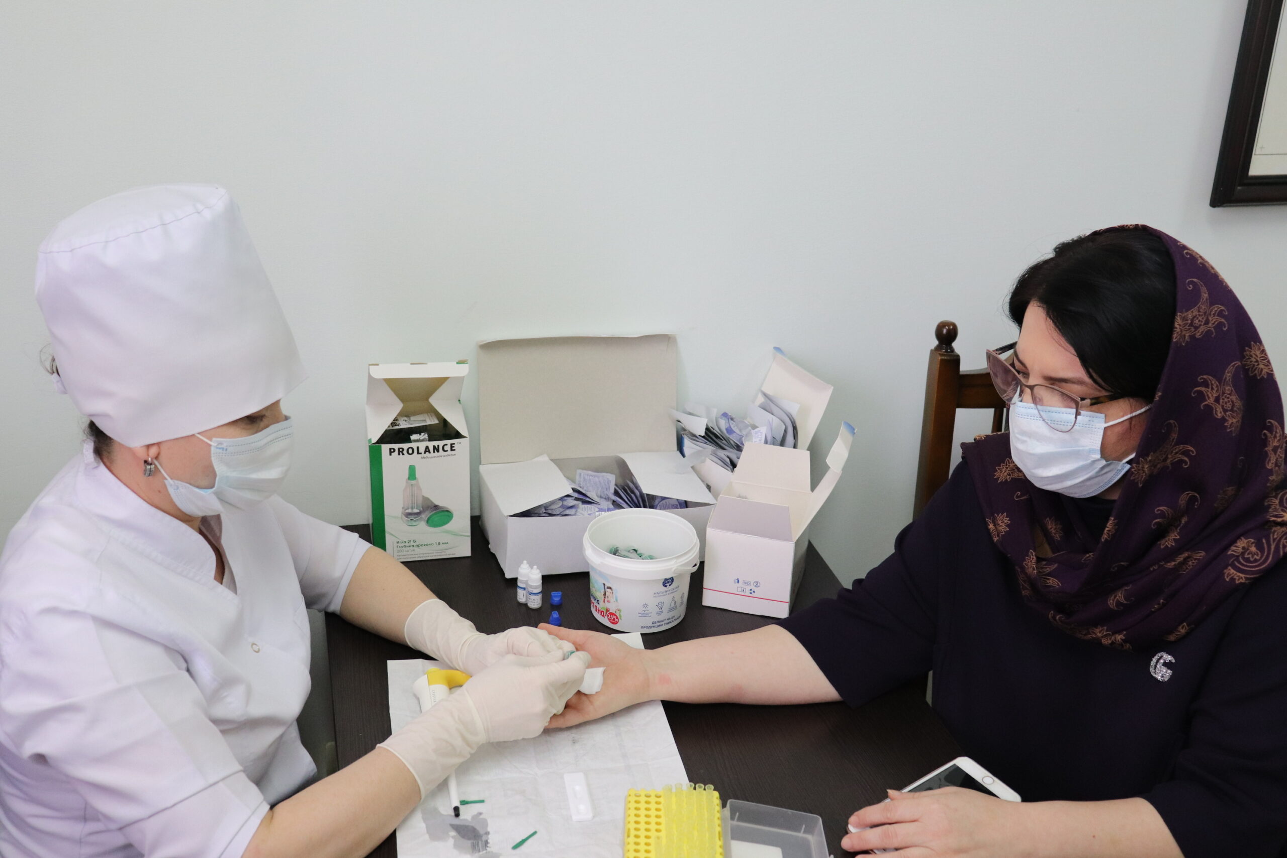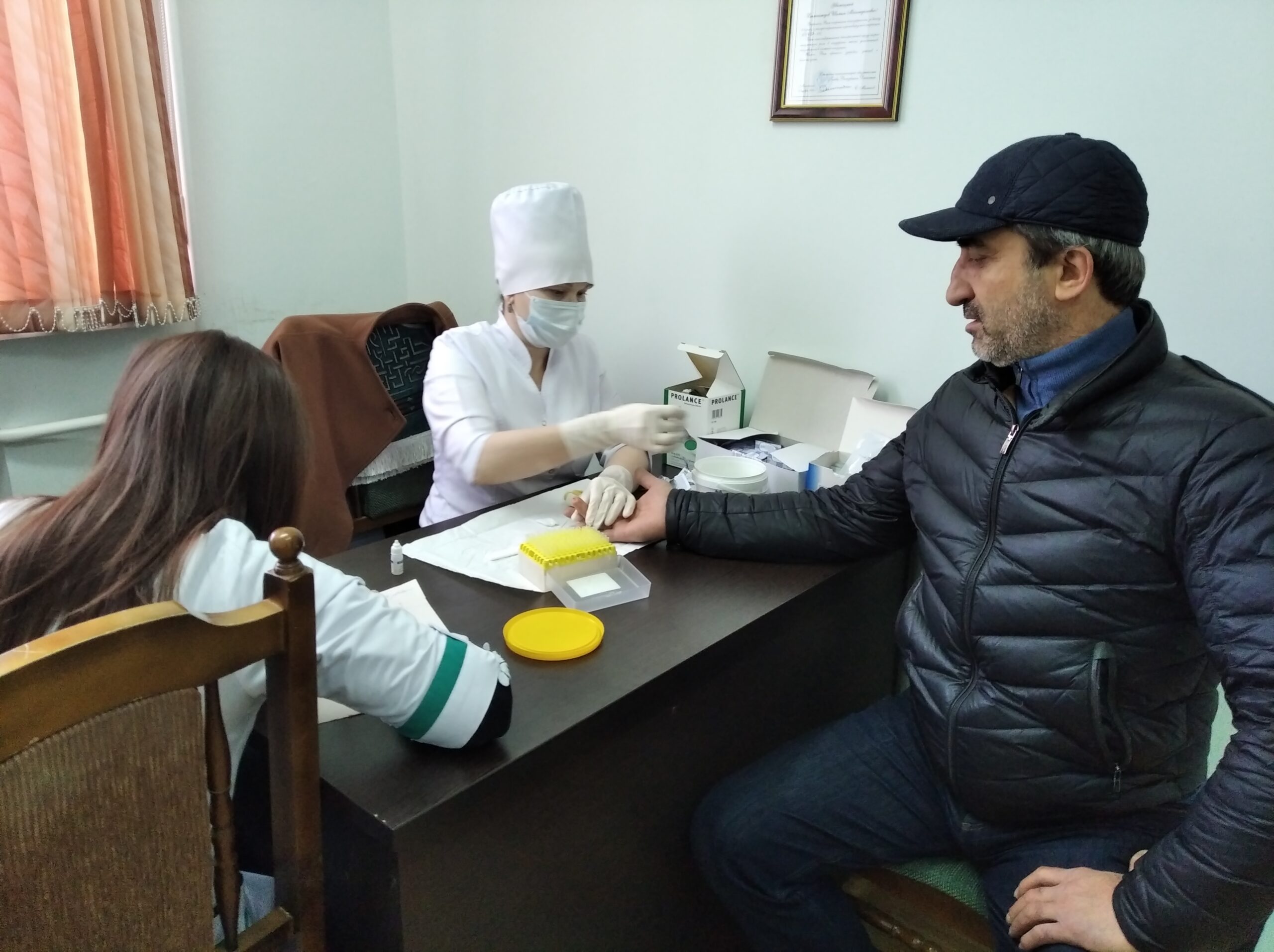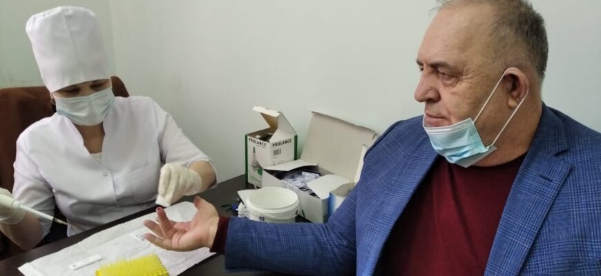 Среди желающих сдать анализы на наличие антител к коронавирусу были заместитель главы администрации района Ибрагим Муталибов, глава сельского поселения Комсомольское Казбек Абдуразаков и многие другие.