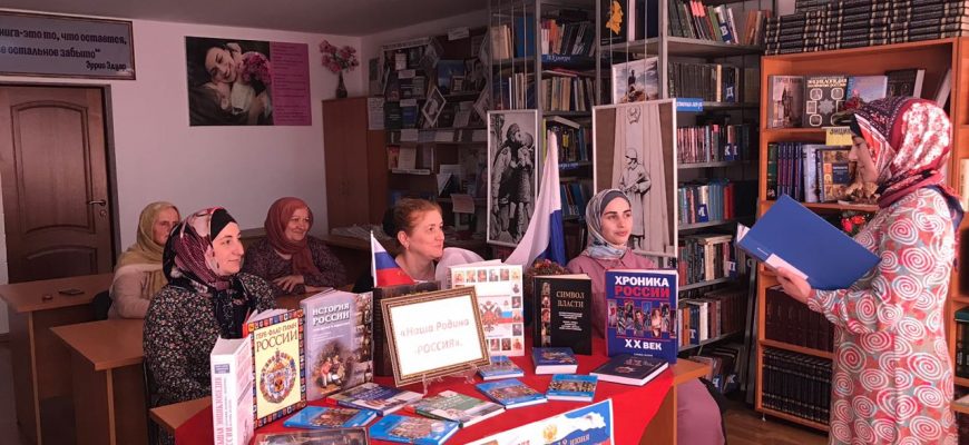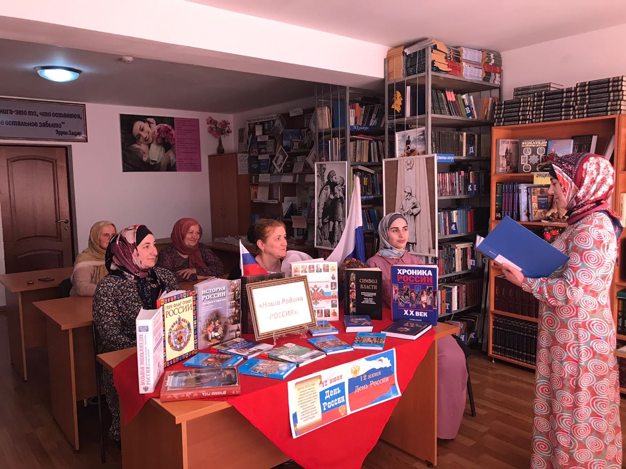 9 июня, в преддверии праздника Дня России, в кизилюртовской межпоселенческой районной централизованной библиотеке, в читальном зале, библиотекарь Наида Шаруханова, организовала исторический час «Наша Родина — Россия».