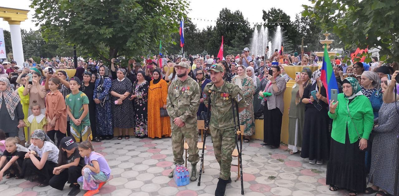Специальными гостями мероприятия стали наши земляки, участвовавшие в спецоперации на Украине и Донбасе Ибрагимхалил Гаджиев и Рамазан Джумакаев.