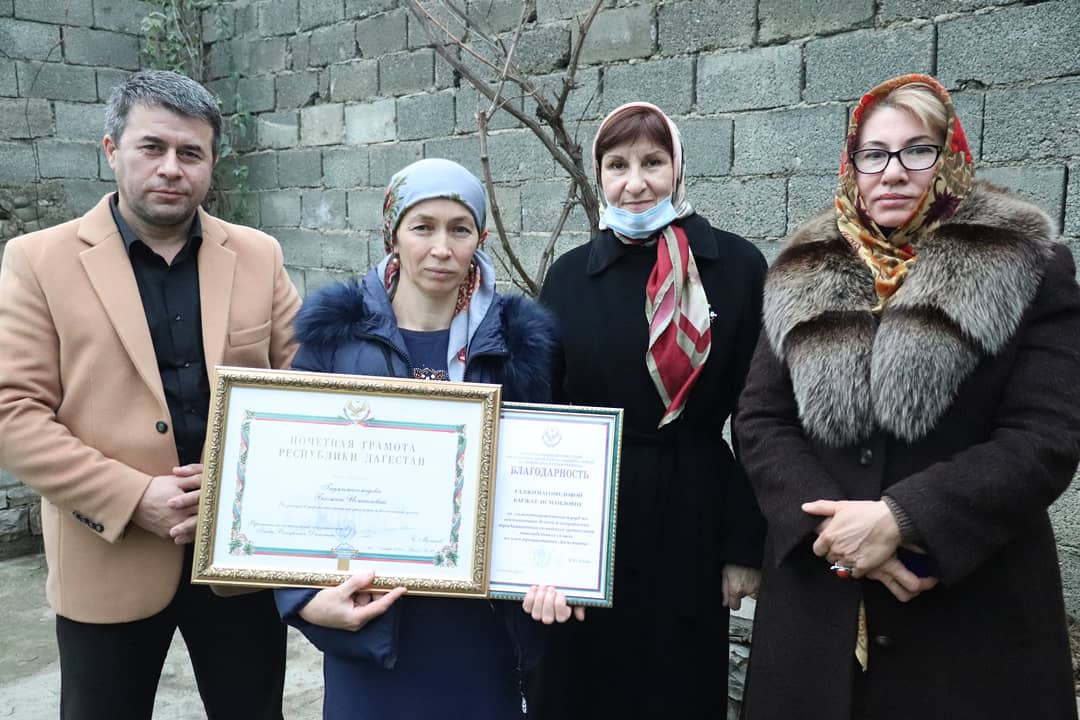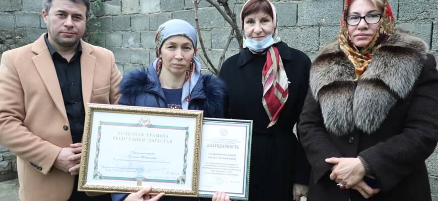 В числе приглашенных на церемонию была и Багжат Исмаиловна Гаджимагомедова. Она удостоилась Почетной грамоты РД за заслуги в укреплении института семьи и воспитании детей , а так же получила Благодарственное письмо за самоотверженный труд по воспитанию детей и сохранение традиционных семейных ценностей многодетных семей во имя процветания Дагестана.