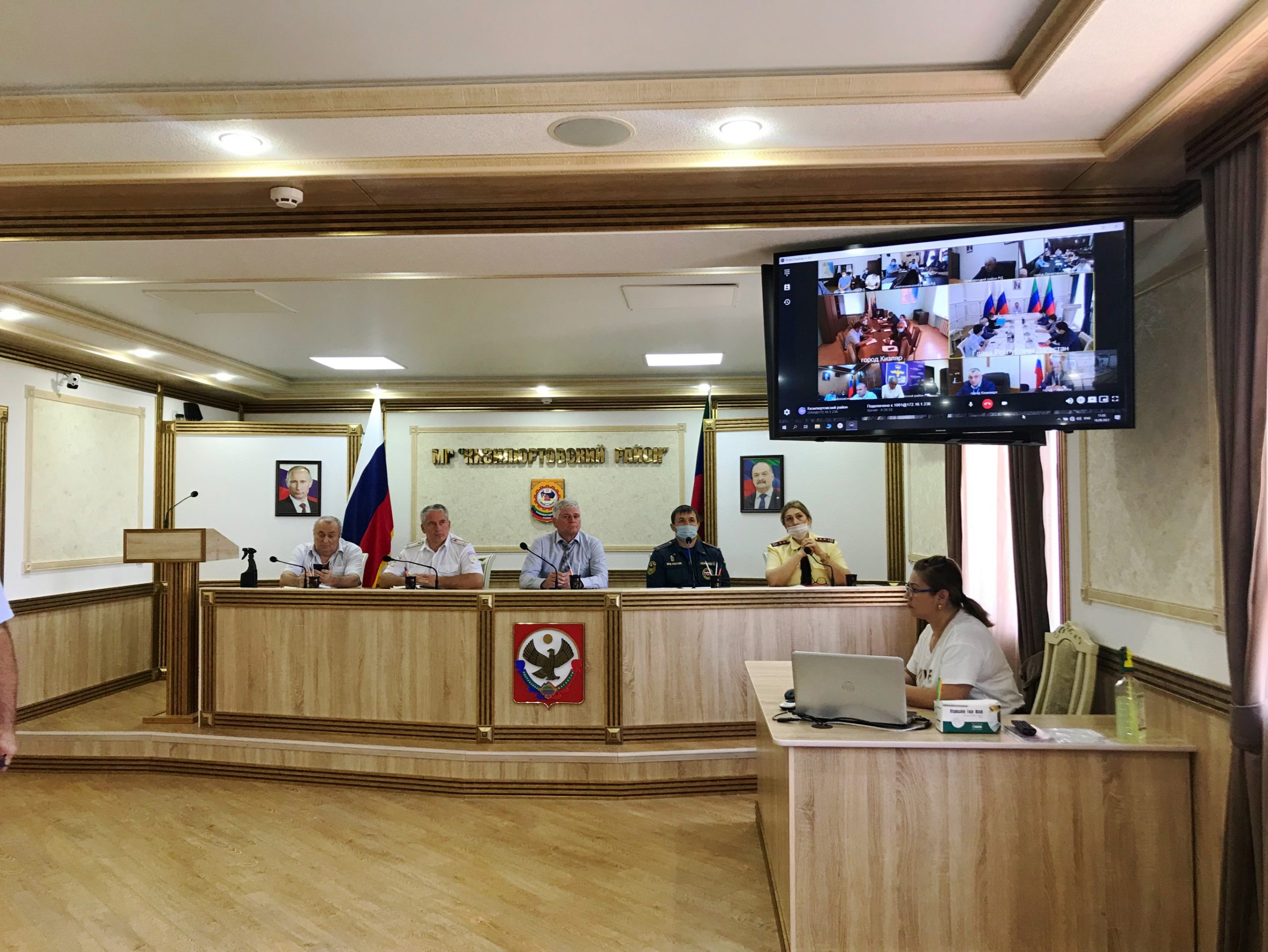 Далее Сергей Алимович проверил готовность сил и средств муниципальных образований. Тренировка прошла методом заслушивания докладов.