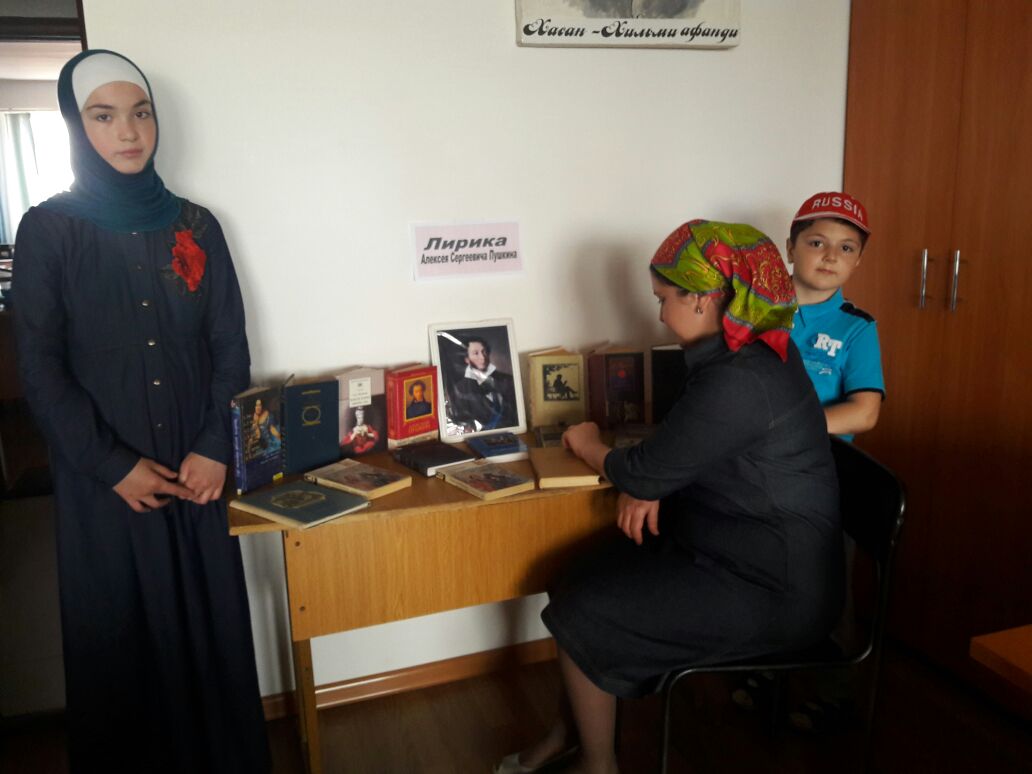Библиотекарь читального зала Шаруханова Наида провела беседу с первыми посетителями выставки, читатели познакомились с творчеством Александра Сергеевича Пушкина, интересными фактами из его жизни, о подробностях дуэли и смерти поэта. Звучали отрывки из лучших произведений Александра Сергеевича.