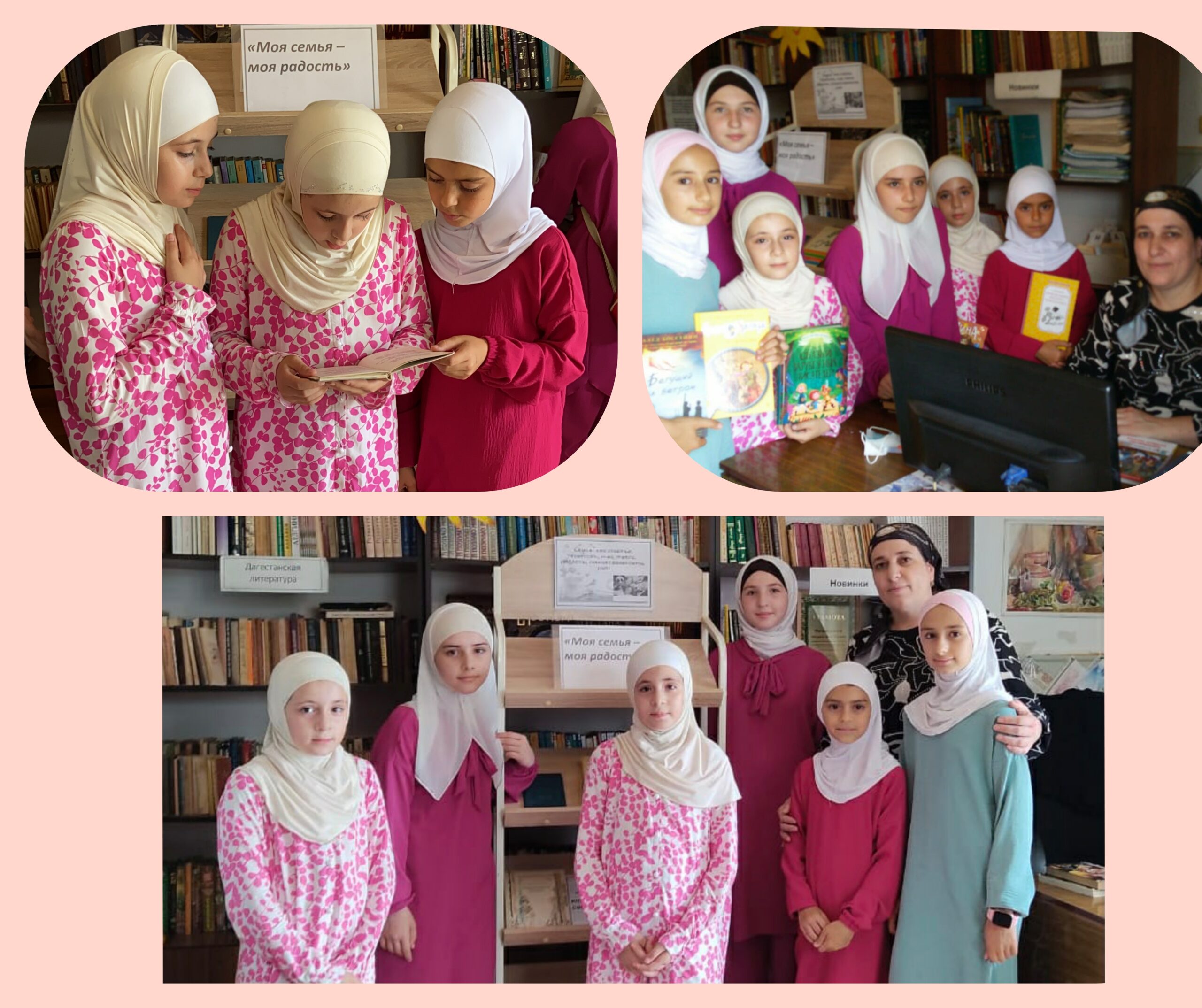В преддверие праздника в селении Новый Чиркей Кизилюртовского района заведующая библиотекой Месей Алхилаева провела час общения с детьми «Моя семья — моя радость».