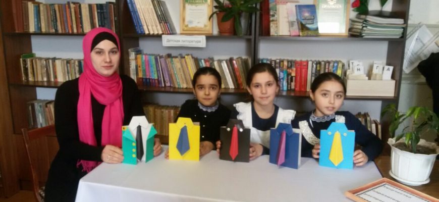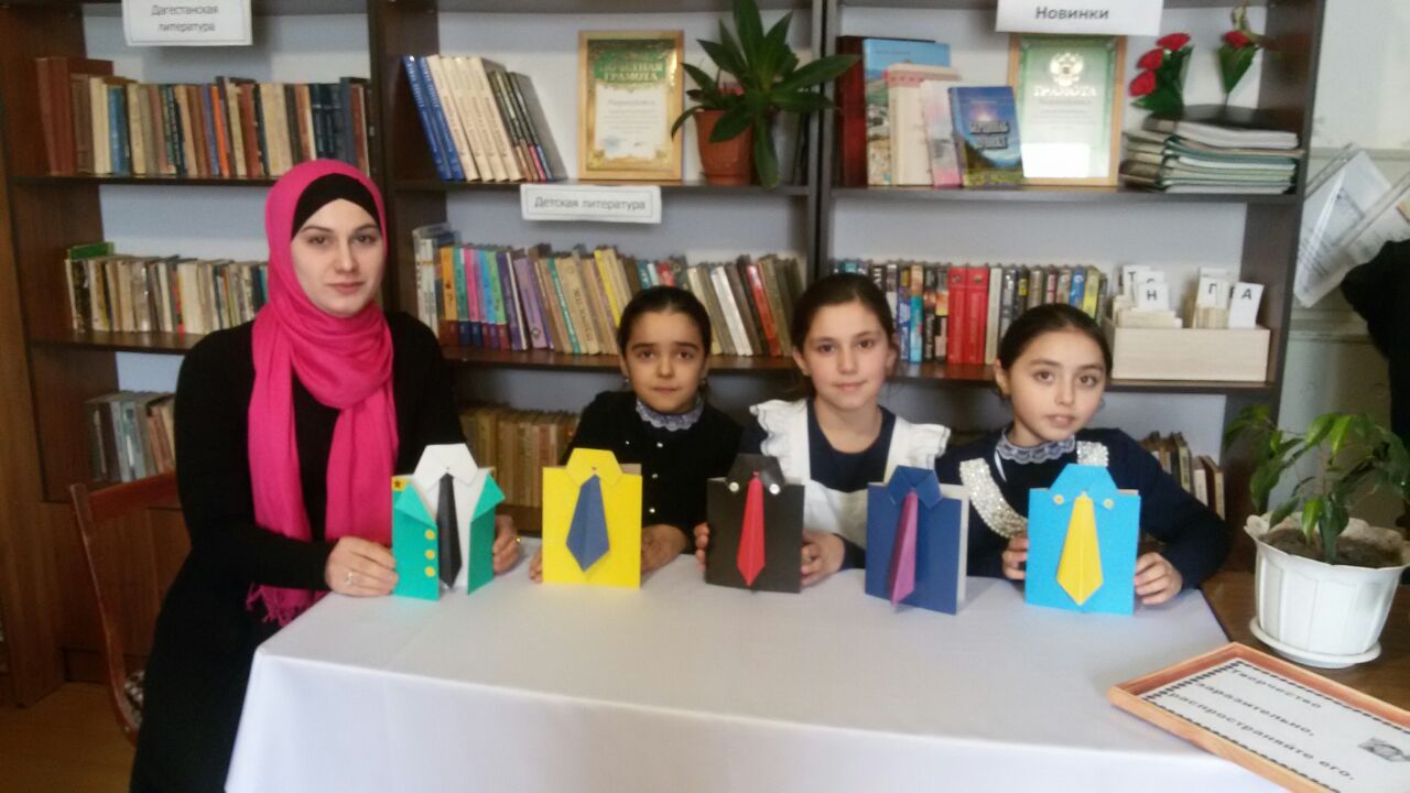 Заведующая библиотекой Саният Гасанова провела мастер – класс для ребят «Открытка своими руками ко Дню защитника Отечества».