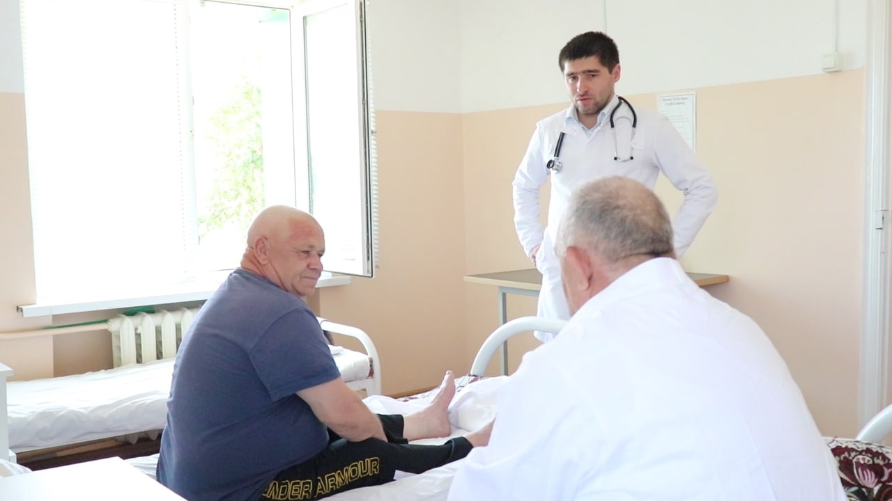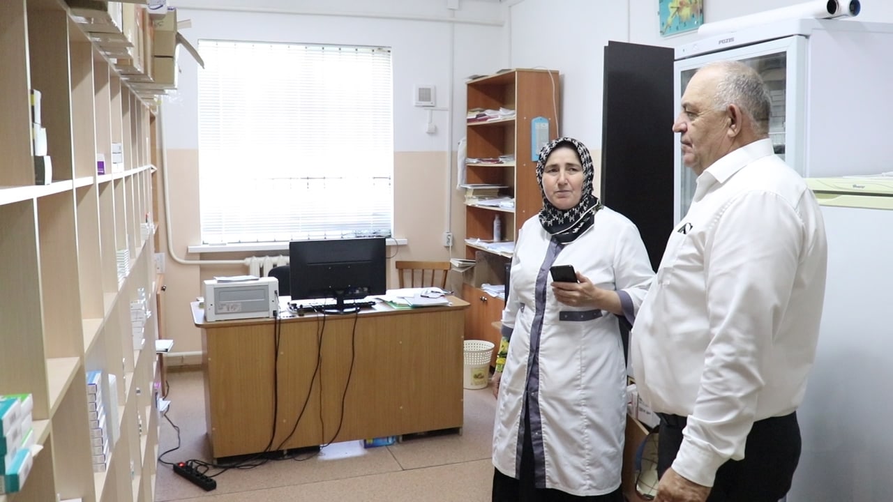 Одним из первых мест посещения стала участковая больница, рассчитанная на 35 коек. Осмотр медучреждения Ибрагим Муталибов начал с регистратуры, поинтересовался, как оказывается стационарная помощь жителям района. Встретился он также и с персоналом больницы, лично осмотрел состояние здания, палат, пообщался с пациентами. Поинтересовался качеством оказываемой медицинской помощи и наличием медикаментов.Обстановку в данной больнице заместитель главы администрации района в целом оценил положительно.