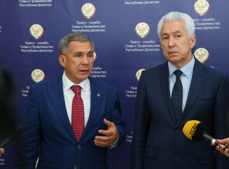 Врио Главы Дагестана Владимир Васильев и находящийся в республике с рабочим визитом Президент Татарстана Рустам Минниханов по итогам подписания соглашения о сотрудничестве по ряду направлений ответили на вопросы журналистов.