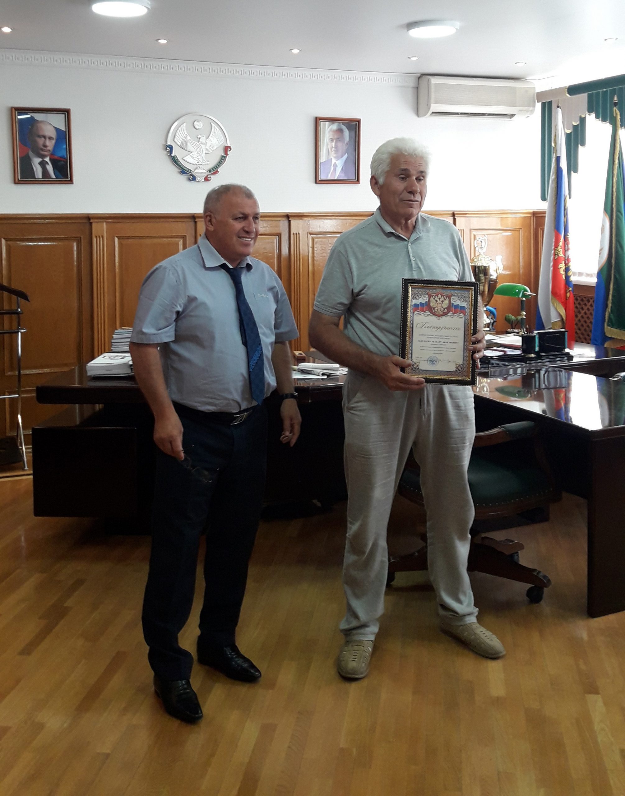 9 сентября в администрации Кизилюртовсого района состоялось поощрение директора межпоселенческого культурно-досугового Центра Каримулы Абдулаева и председателя районной контрольно — счетной комиссии Халила-Рахмана Хайбулаева.