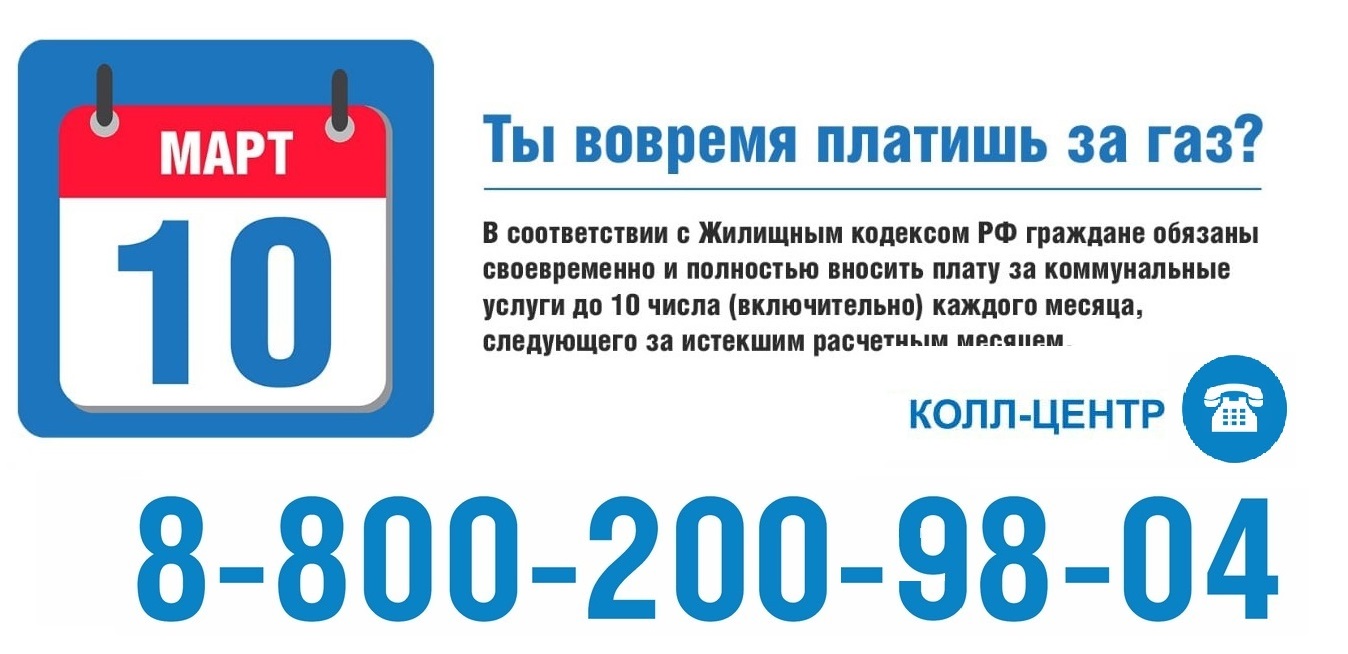 ООО «Газпром межрегионгаз Махачкала» напоминает о необходимости строгого соблюдения платёжной дисциплины и регулярной оплаты за потребленный газ до 10 числа месяца, следующего за расчётным (включительно). Также, абоненту необходимо передавать показания прибора учёта с 23 по 25 число ежемесячно.