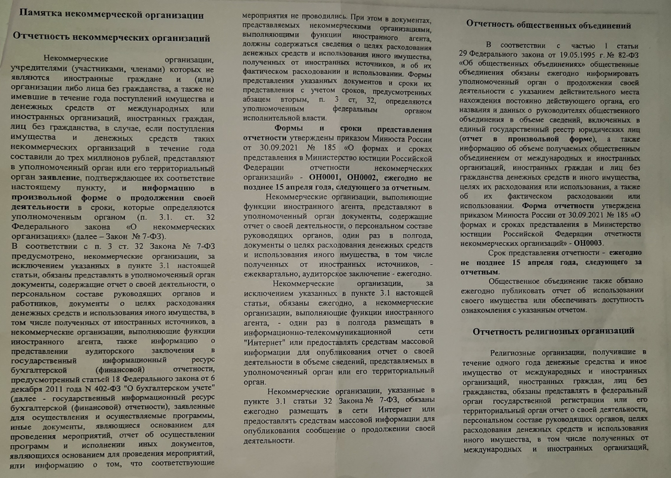 Памятка некоммерческой организации. Отчетность некоммерческих организаций