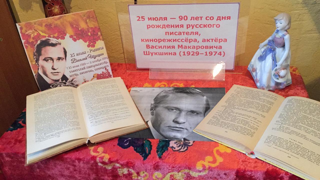 В библиотеке селения Миатли оформлена книжная выставка, посвященная 90 – летию со дня рождения талантливого сценариста, писателя, режиссера и актера Василия Шукшина.