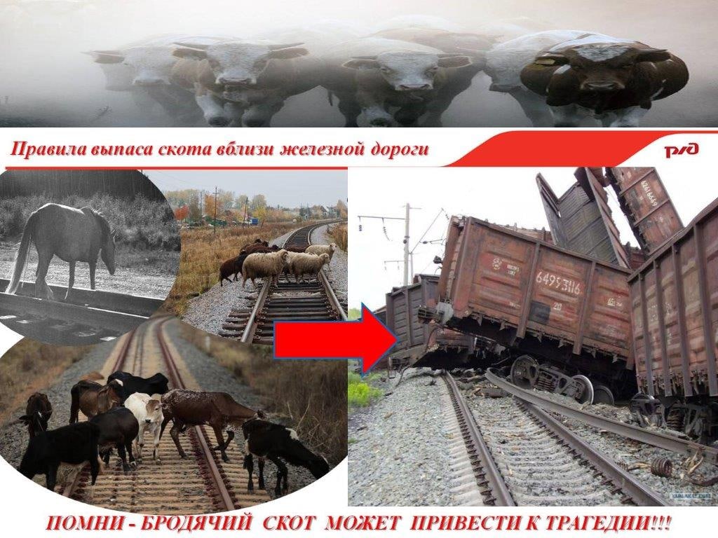 4. Стадо скота должно прогоняться при достаточном количестве погонщиков, исключающем возможность выхода скота на железнодорожный путь.