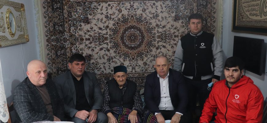 Гости приехали чтобы поздравить уважаемого человека с наступающим праздником, и от имени главы района Рустама Татарханова вручить ему конверт и продуктовые корзины.