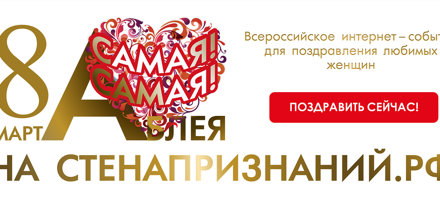 Всероссийское интернет-событие Ассамблея «САМАЯ! САМАЯ!» на СТЕНАПРИЗНАНИЙ.РФ приглашает поздравить женщин с Международным женским днем!