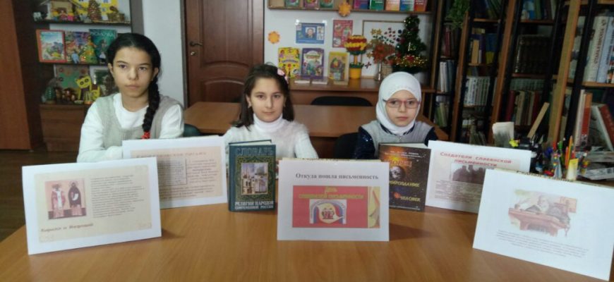 18 января в районной централизованной библиотеке заведующая детским отделом Магомедова Саимат провела литературный час «Откуда пошла письменность», посвященный славянской письменности.