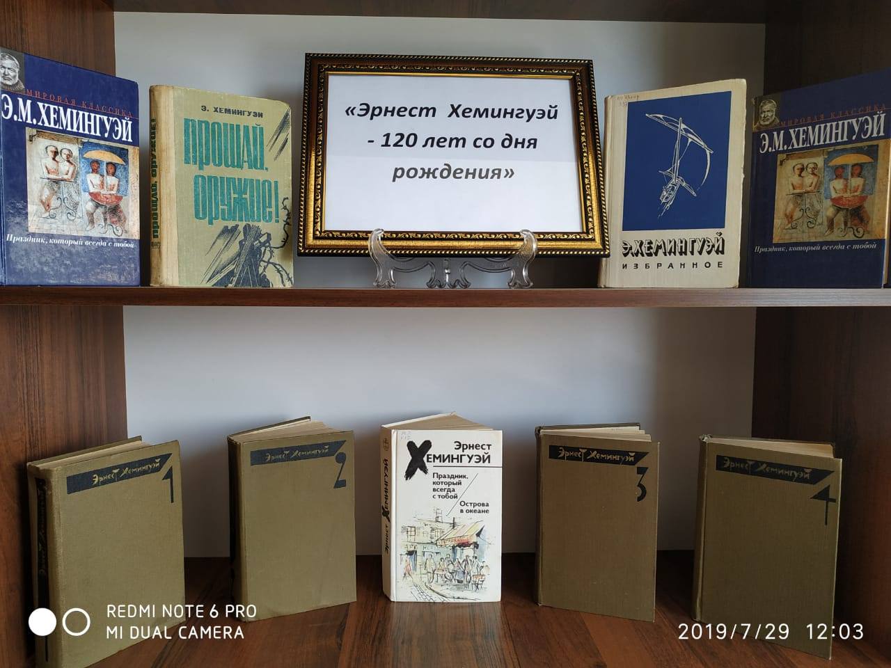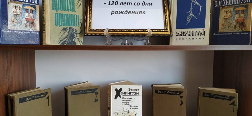 С 5 августа в читальном зале районной библиотеки работает книжная выставка, посвященная 120-летию со дня рождения американского писателя, лауреата Нобелевской премии Эрнеста Хемингуэя. Выставку оформила библиотекарь читального зала Наида Шаруханова.