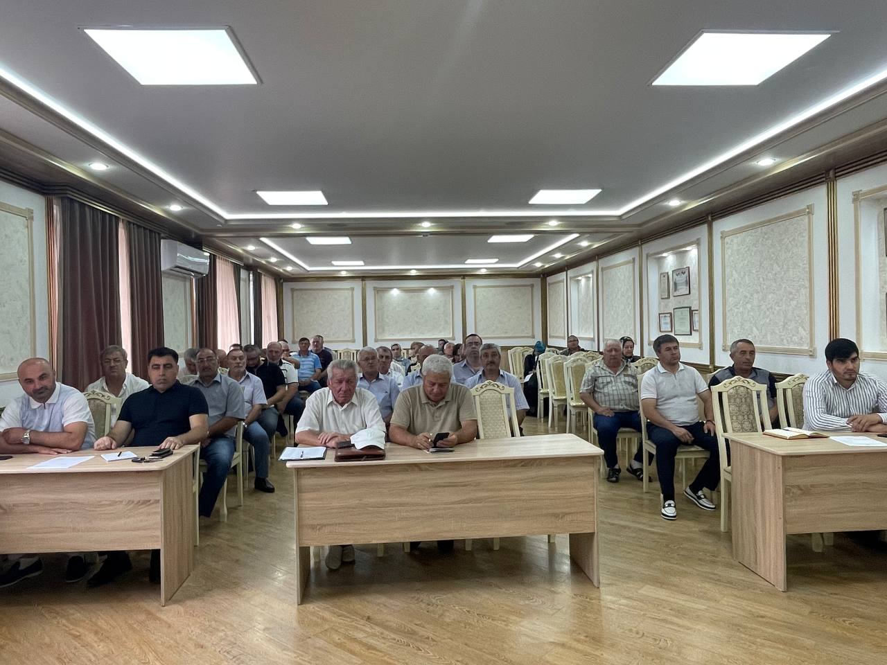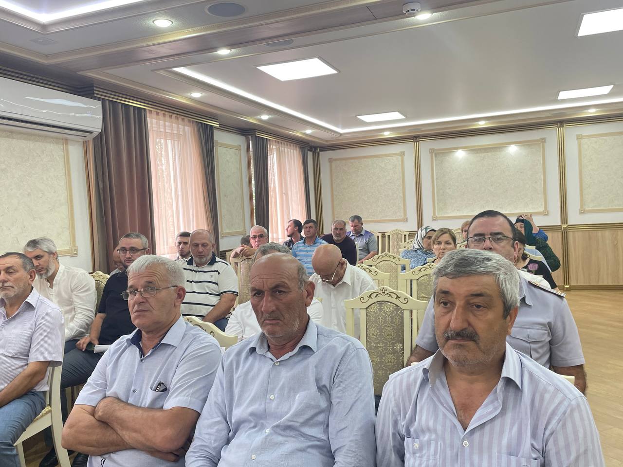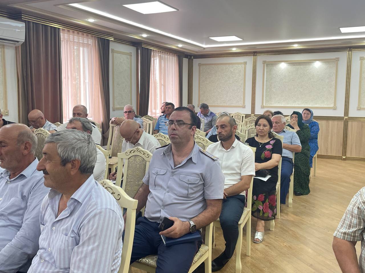В президиуме — руководитель муниципалитета Рустам Татарханов, председатель районного Собрания депутатов Абдурашид Магомедов, заместитель главы администрации района Адиль Аджаматов, старший инспектор ГОООПОО МОВО по г. Кизилюрт, филиала ФГКУ «УВО ФНГ России по РД» Рашид Гаджиев и начальник ОНД и ПР № 6 ГУМЧС России по РД Рамин Ахмедов.