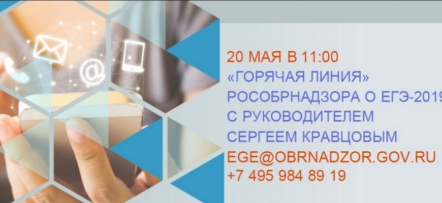 Горячая линия пройдет 20 мая, но прием вопросов уже начался. Направить вопрос можно несколькими способами: на почту ege@obrnadzor.gov.ru; через страницу «ЕГЭ и ГИА» в соцсетях; по телефону +7 495 984-89-19.