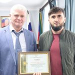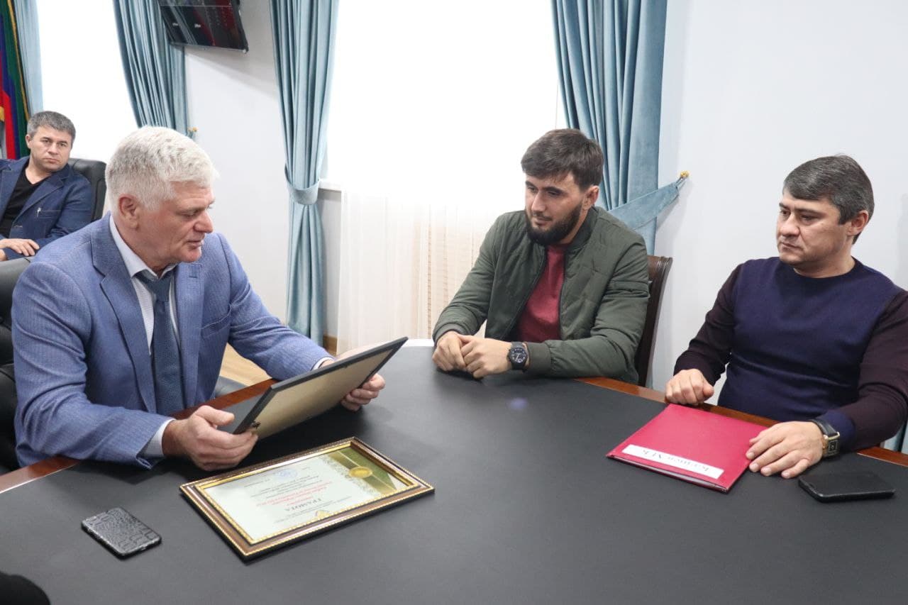 Вручая Благодарность за достигнутые высокие показатели в области спорта, Рустам Татарханов поздравил спортсмена с достойной победой и пожелал ему «продолжать в том же духе». Спортсмен тренируется в городе Хасавюрте под руководством Пахрудина Магомедрасулова.