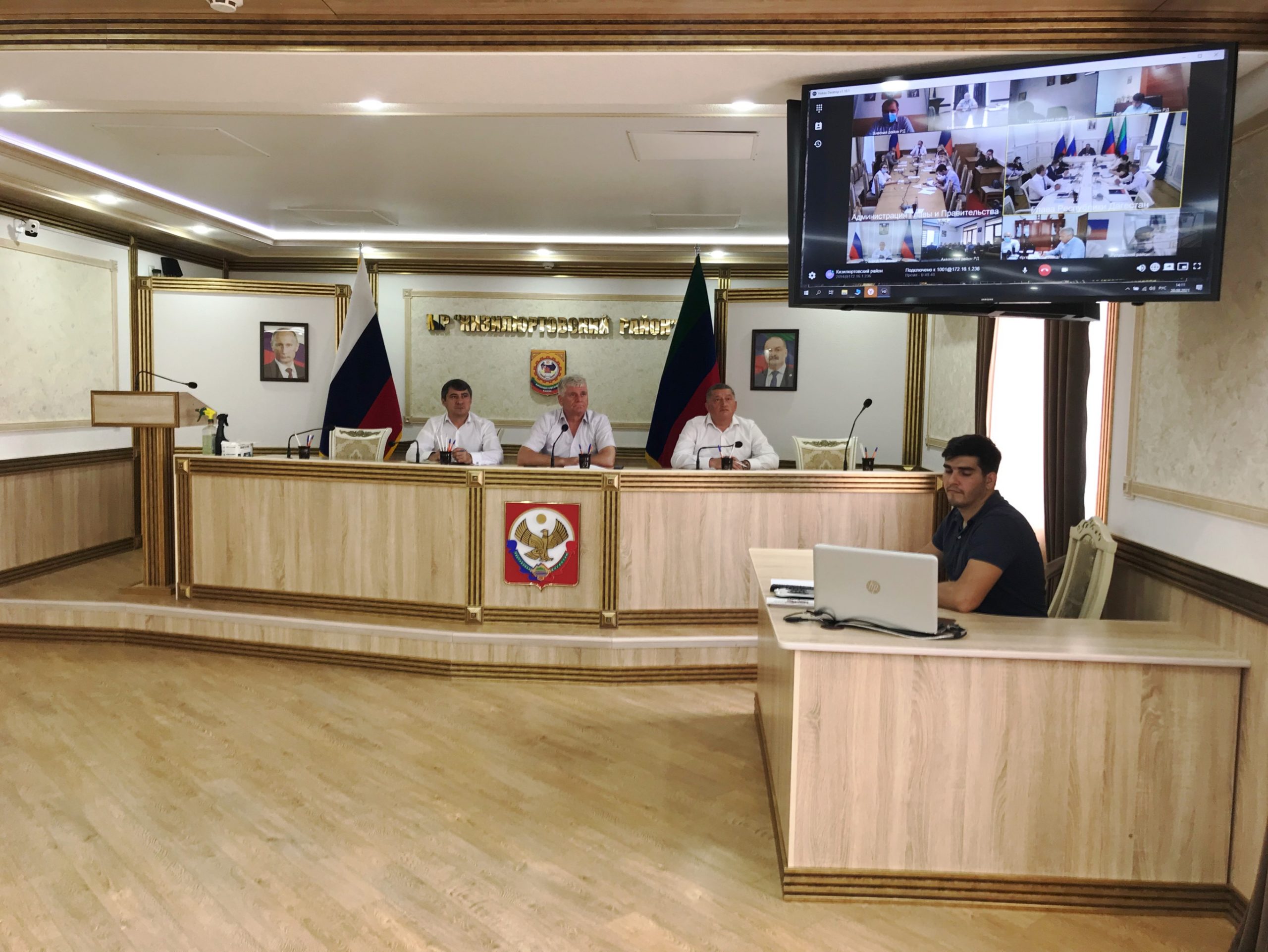 В актовом зале администрации Кизилюртовского района на прямом подключении присутствовали глава района Рустам Татарханов, его заместитель Магомедгаджи Кадиев, директор государственного казенного учреждения РД «Центр обслуживания деятельности образовательных учреждений, расположенных в зонах отгонного животноводства» Магомедшапи Джахбаров.