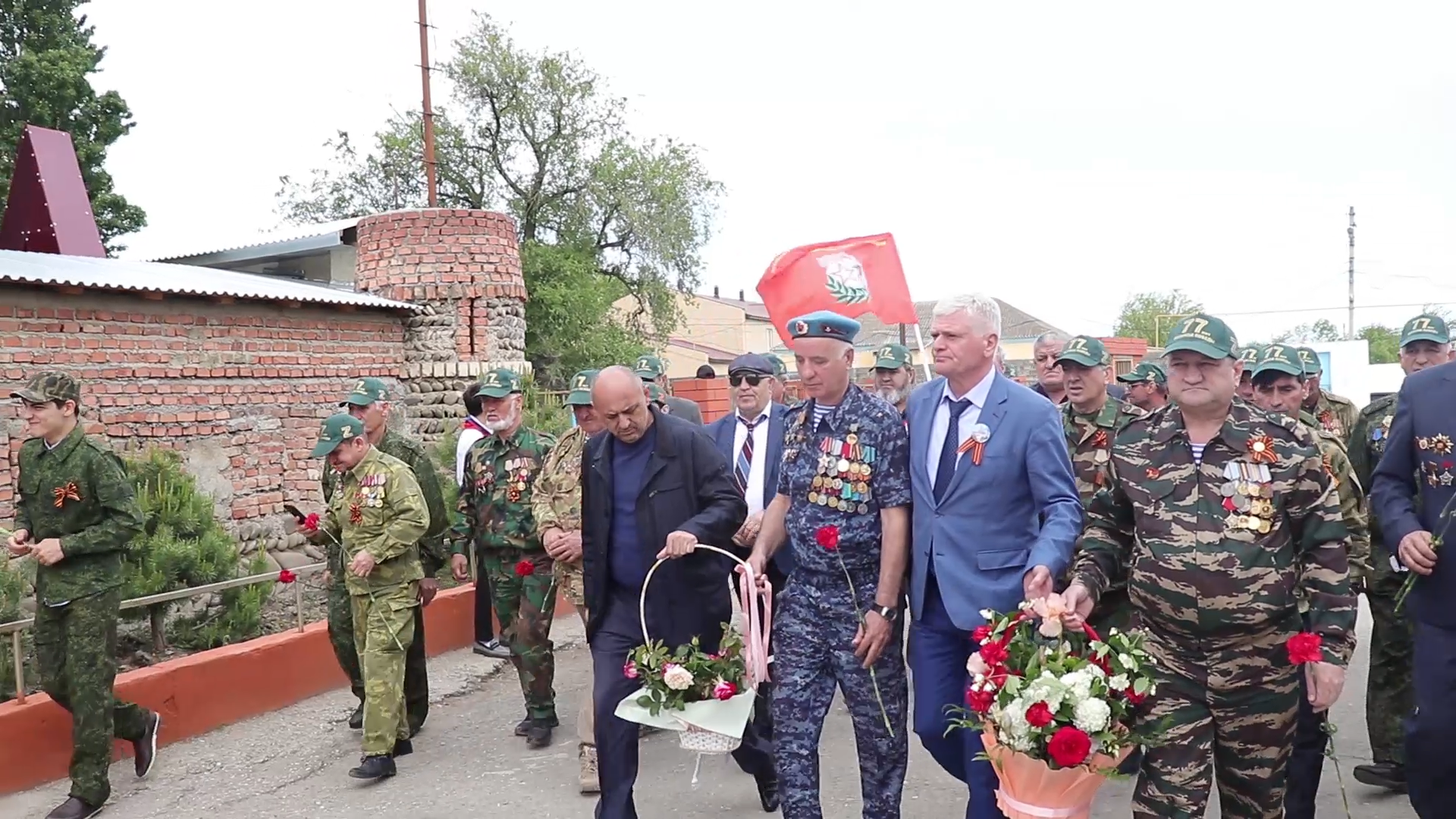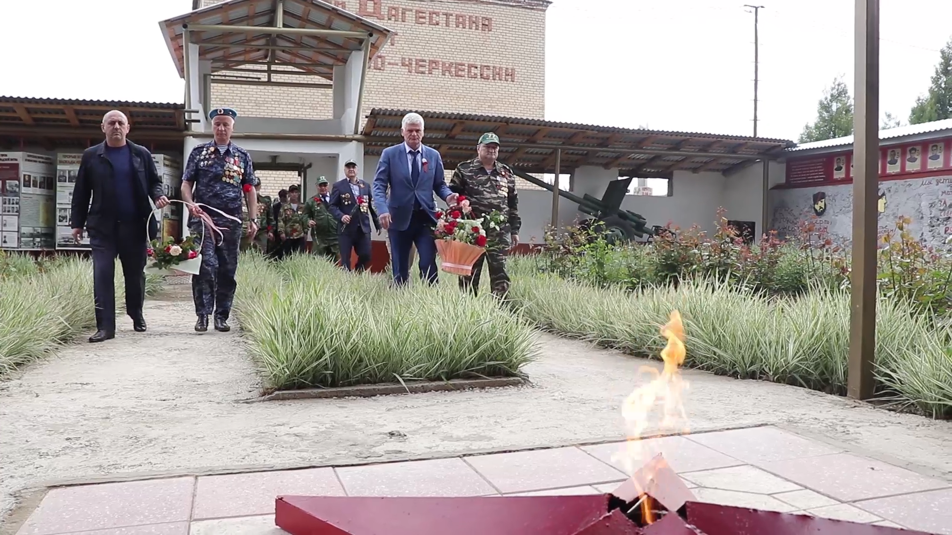 Все участники мероприятия направились в школьный исторический городок и музей российской боевой славы имени Расула Газиева для возложения цветов к Вечному огню и почтили минутой молчания.