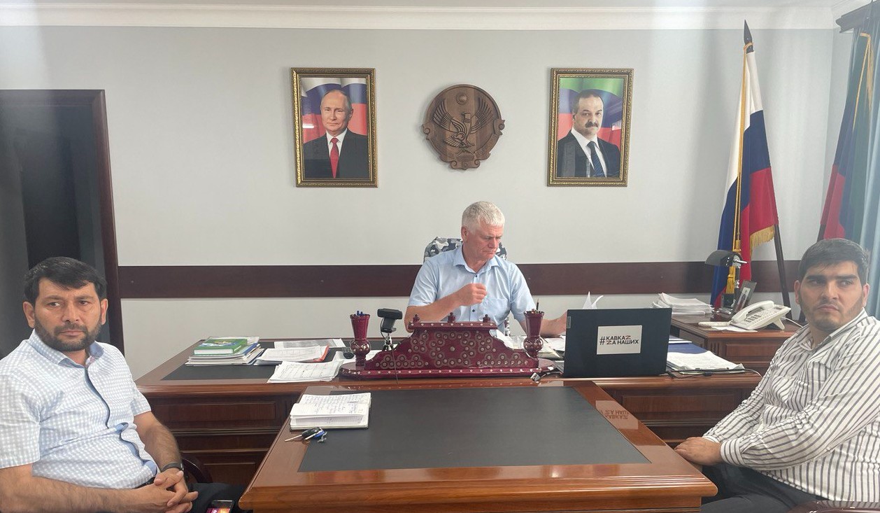 Совещание проводит руководитель Администрации Главы и Правительства РД Алексей Гасанов. В нем также принимают участие заместитель главы администрации района Адиль Аджаматов и директор пресс-центра администрации района Шамиль Исаев.