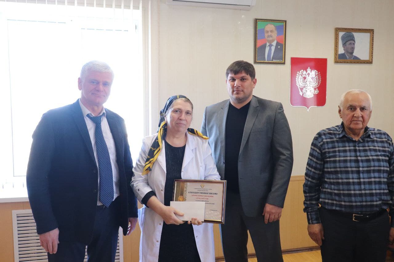 Рустам Багавдинович вручил благодарственные письма и премии от администрации района отличившимся медицинским работникам за их вклад в борьбе с распространением COVID-19 в своем селе.