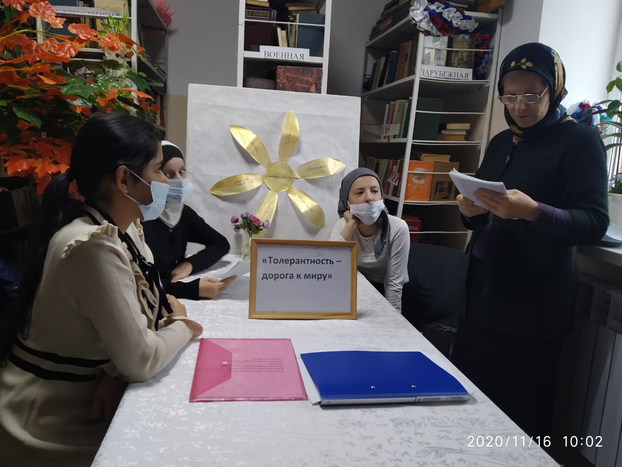 Час общения «Толерантность-дорога к миру» был проведен в библиотеке селения Акнада.