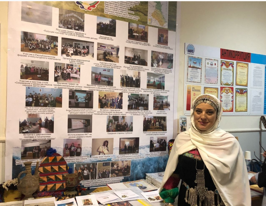 Республику Дагестан на мастер-классах представила победительница конкурса «Лучший учитель родного языка РД – 2018», преподаватель даргинского языка Краснопартизанской школы Сергокалинского района Насибат Гаджиева.