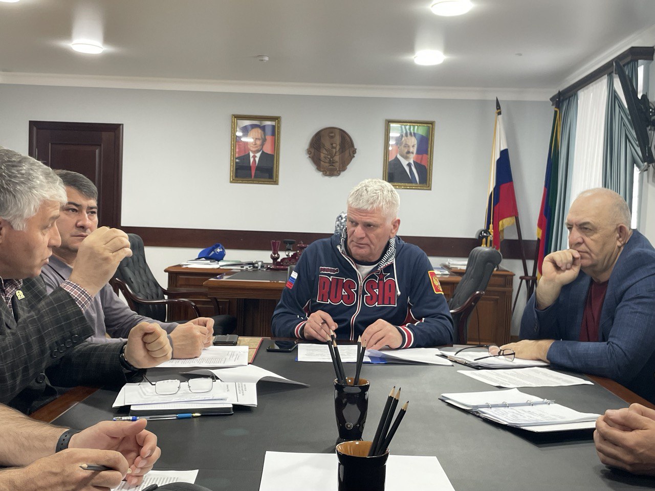 Кроме того, были затронуты вопросы проведения концертной программы и разработки сценария, месторасположения автомобиля с передвижной сценой, а также было сказано о необходимости подготовки баннера с гербом администрации Кизилюртовского района.