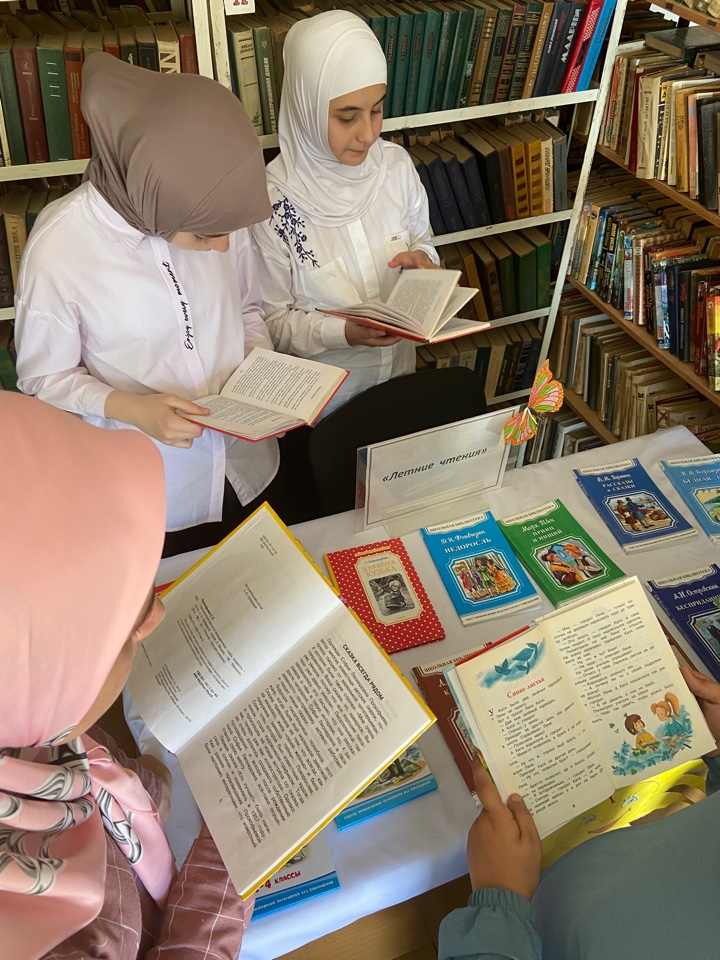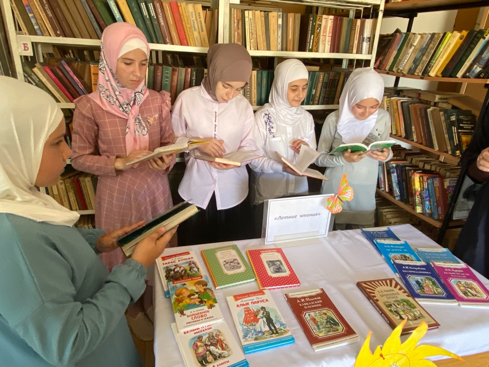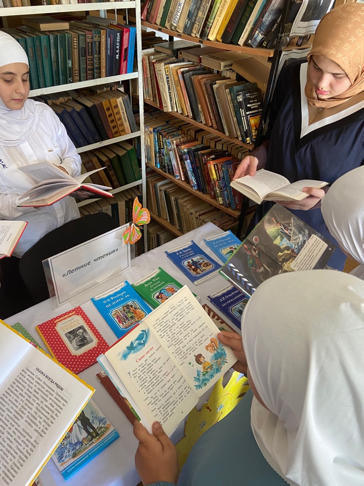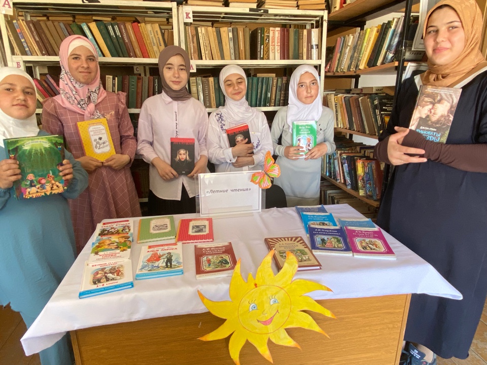А еще лето-это самое время отправиться на поиски своей любимой книги. С этой целью в библиотеке селения Новый Чиркей была оформлена книжная выставка «Летние чтения». На выставке были представлены книги для детей разных возрастов. Выставку посетили дети из исламского лагеря.