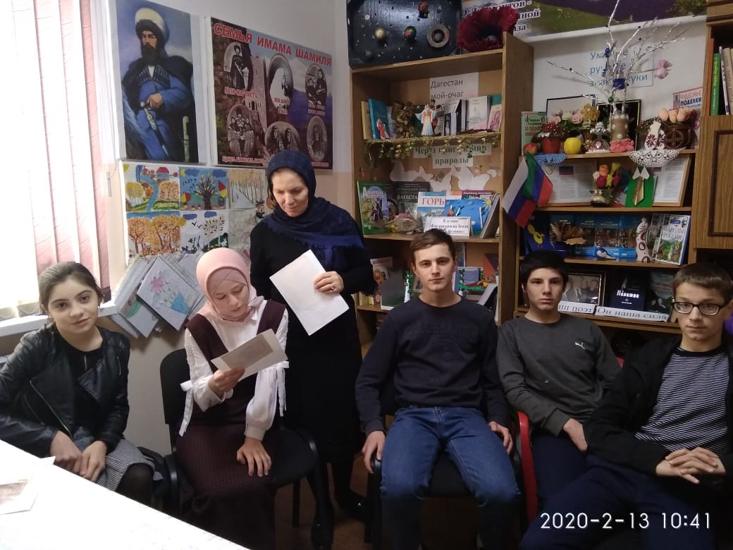 13 февраля заведующая библиотекой селения Акнада Джамиля Алиева провела урок истории с учащимися 8-9 классов на тему «Роль детей в годы Великой Отечественной войне».