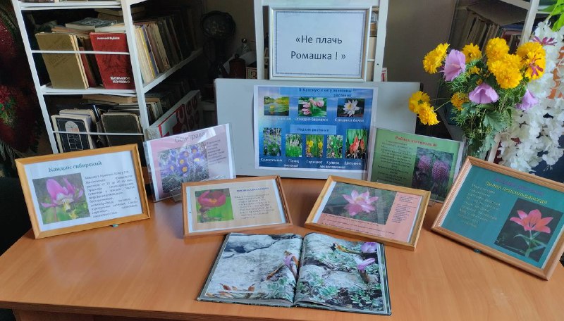Также к мероприятию была оформлена книжно-иллюстративная выставка «Не плачь, ромашка! «, где представлены книги и фото с редкими исчезающими растениями.