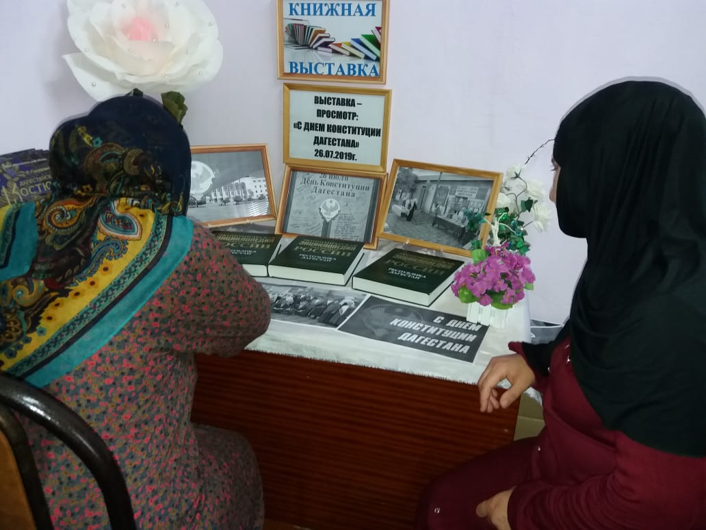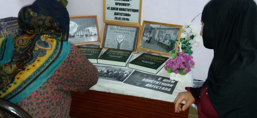 26 июля в Дагестане отмечается государственный праздник — День Конституции РД. К этой дате заведующая библиотекой селения Кироваул Мукумагомедова оформила книжную выставку — просмотр «День Конституции Дагестана».