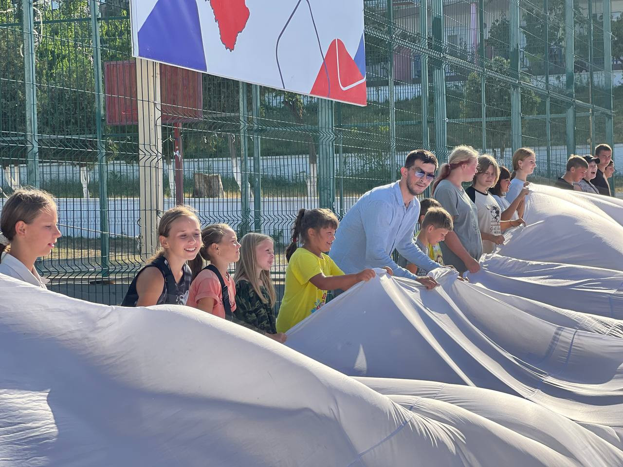 В ходе мероприятия вместе с детьми была организована акция по разворачиваются российского триколора. Кроме того, с детьми побеседовали на тему Великой Отечественной войны и других героических страницах истории России. В завершение встречи отдыхающим в лагере подарили VR-очки «Неизвестный знаменосец».
