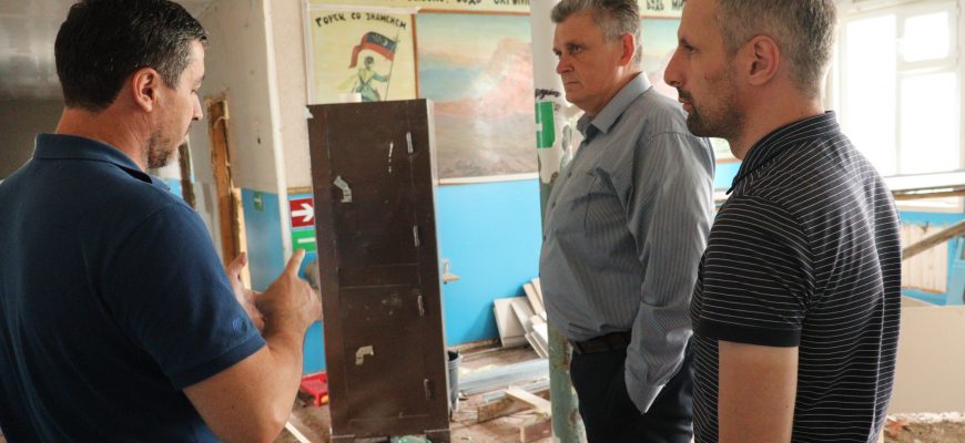 В этот же день, по окончании совещания заместитель главы администрации Николай Баранов выехал в селение Гадари и ознакомился с ходом школьного ремонта в присутствии подрядчика Курбандибира Пашаева (ООО «Спектр»).