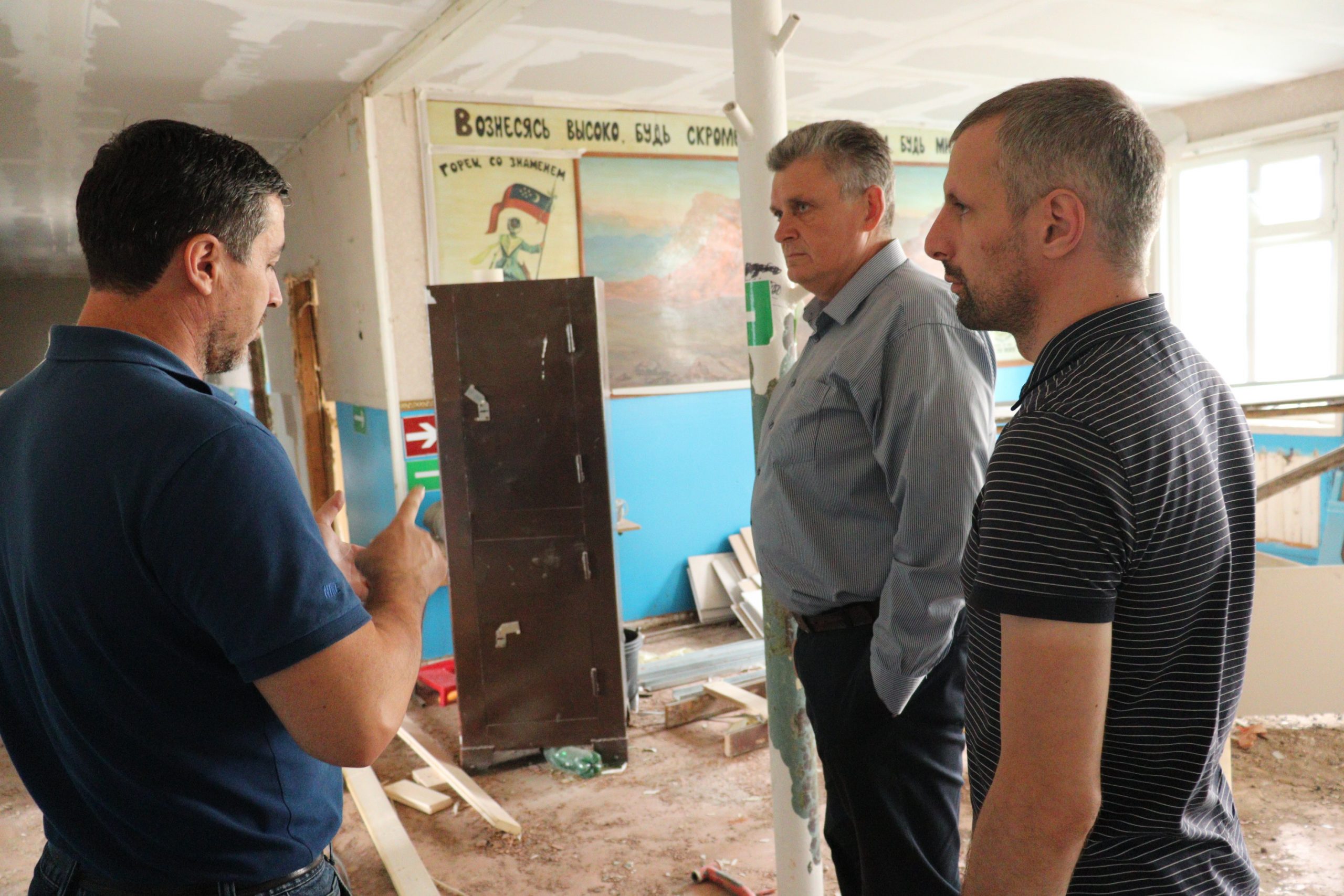 В этот же день, по окончании совещания заместитель главы администрации Николай Баранов выехал в селение Гадари и ознакомился с ходом школьного ремонта в присутствии подрядчика Курбандибира Пашаева (ООО «Спектр»).