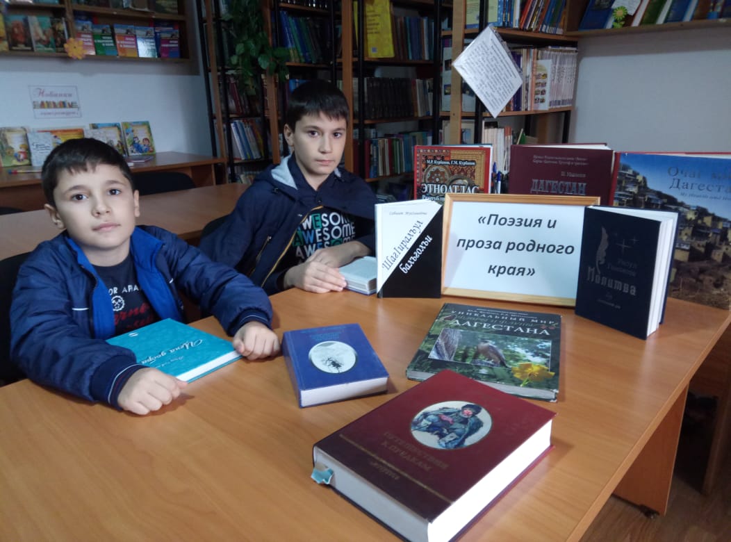 Заведующая детским отделом Саймат Магомедова рассказала ребятам о жизни и творчестве поэтов и писателей родного края — Расула Гамзатова, Сабигат Магомедовой, Абу-Бакара Ахмедхана, Аткая Аджаматова, Сулеймана Стальского, Фазу Алиевой. Прочитала некоторые стихотворения и небольшие отрывки из их произведений о родном крае. «У каждого из них — свое представление об окружающем мире; кто-то воспевает земную любовь, кого-то вдохновляет природа Кавказа. Но все они – поэты, воспевшие Дагестан в самых разных его проявлениях, его горы, историю, людей.